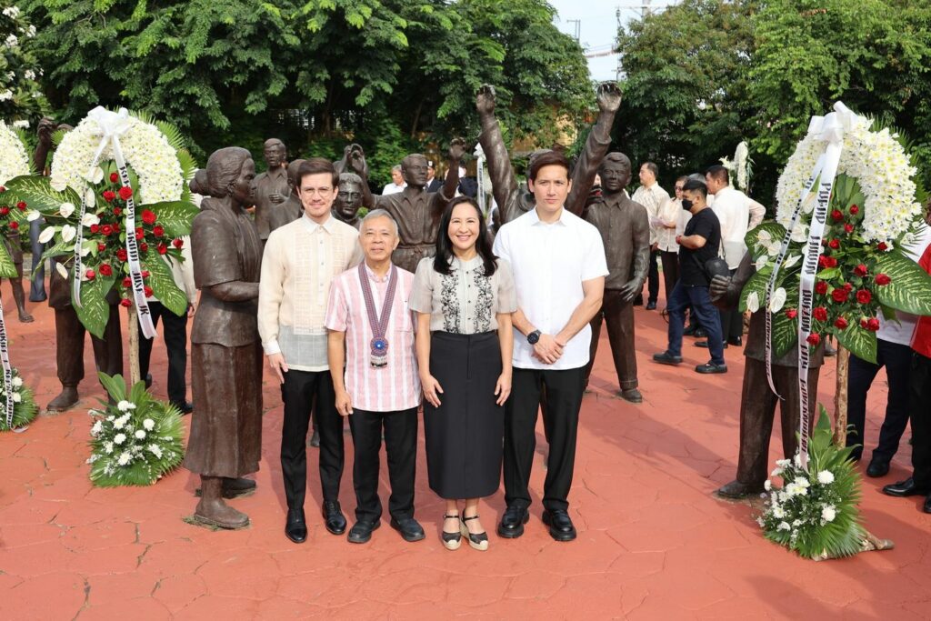 Nag-alay ng bulaklak si Mayor Joy Belmonte kasama sina Vice Mayor Gian Sotto at District 1 Rep. Arjo Atayde bilang paggunita sa ika-128 anibersaryo ng Sigaw ng Pugad Lawin ngayong araw.