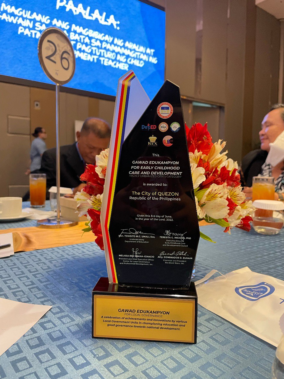 Kinilala ang Quezon City Government bilang isa sa mga pinakamahusay na lungsod (Highly Urbanized Cities Category) sa Pilipinas sa pagbuo ng epektibo at napapanahong programa para sa Early Childhood Care and Development, sa ginanap na 1st Gawad Edukampyon Awards ngayong umaga.