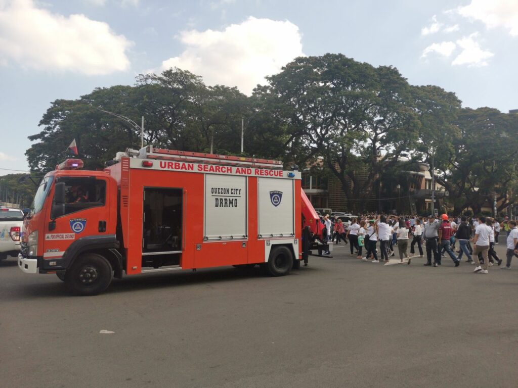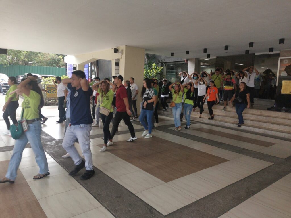 Pinangunahan ng QC Disaster Risk Reduction and Management Office ang pagsasagawa ng evacuation procedure kasama ang ilang tanggapan ng QC Hall bilang bahagi ng Rapid Damage Analysis and Needs Assessment (RDANA).