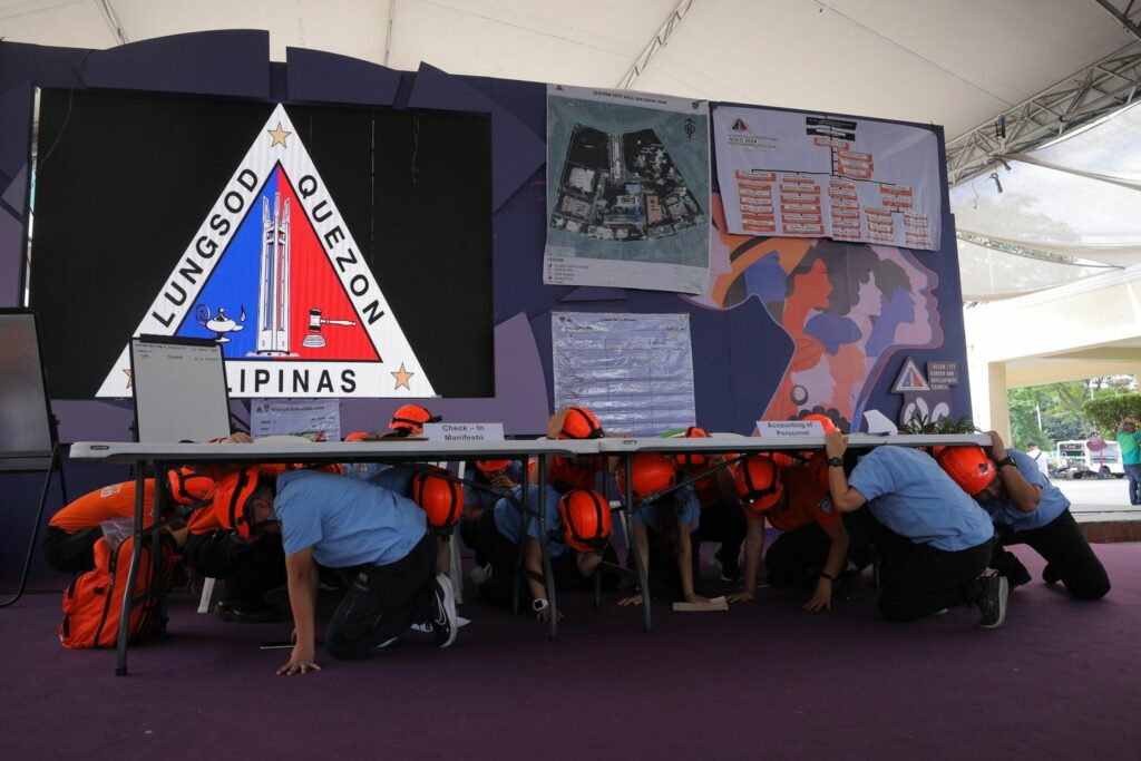 Sama-samang nag duck, cover, and hold ang mga kawani ng pamahalaang lungsod sa ginanap na Nationwide Simultaneous Earthquake Drill bilang paghahanda sa magnitude 7.2 na lindol.