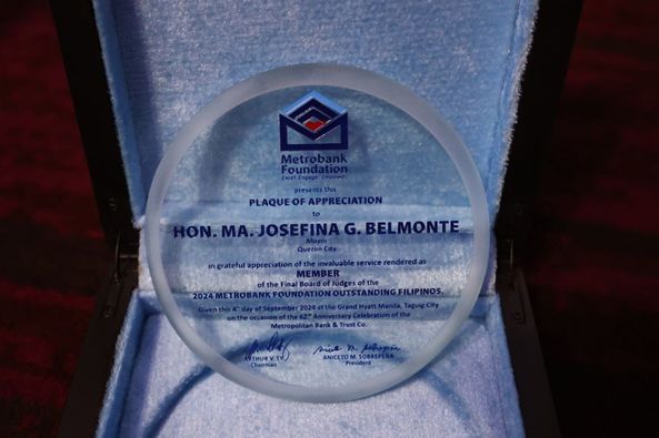 Ginawaran din ng Plaque of Recognition si Mayor Joy Belmonte bilang isa sa mga 2024 Final Board of Judges at sa kanyang suporta sa mga inisyatibo ng Metrobank Foundation.