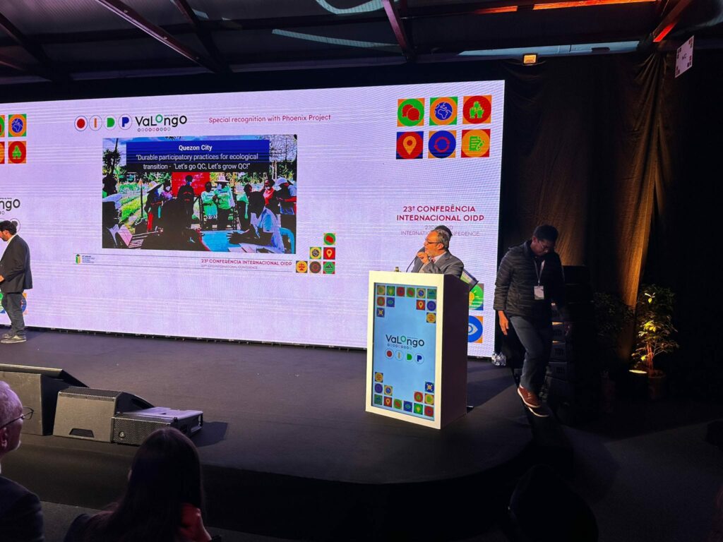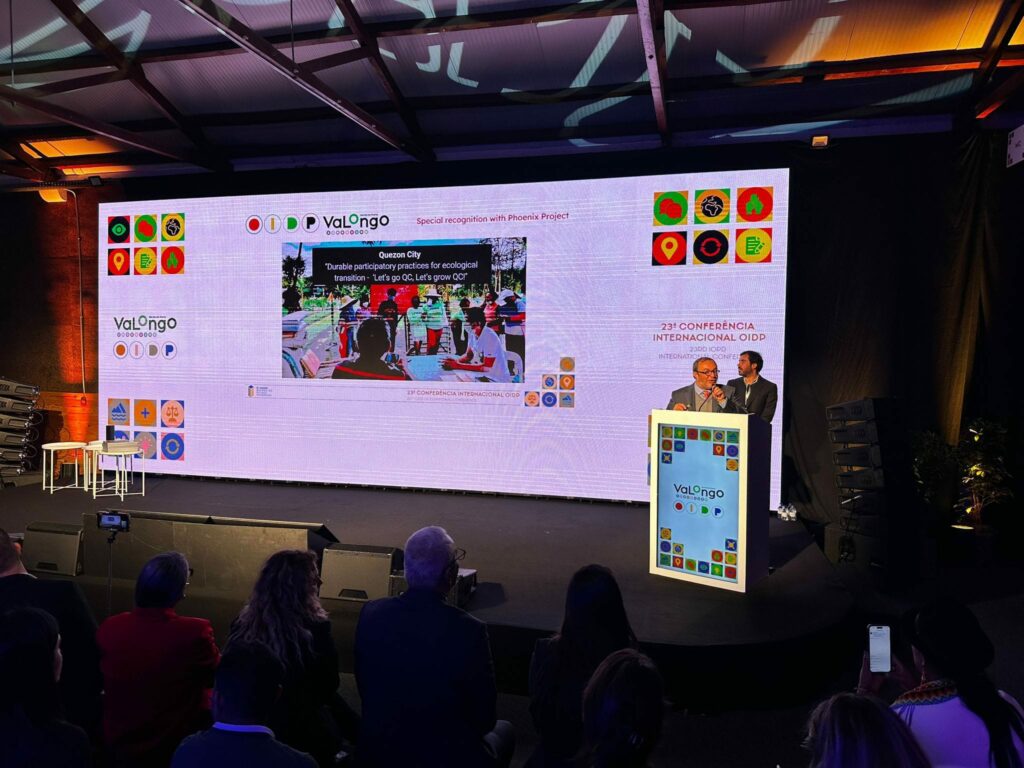 Iprinisinta ni Dr. Arch. Giovanni Allegretti mula sa University of Coimbra at Adriá Duarte ng International Observatory on Participatory Democracy ang parangal sa Valongo, Portugal noong ika-18 ng Oktubre 2024.