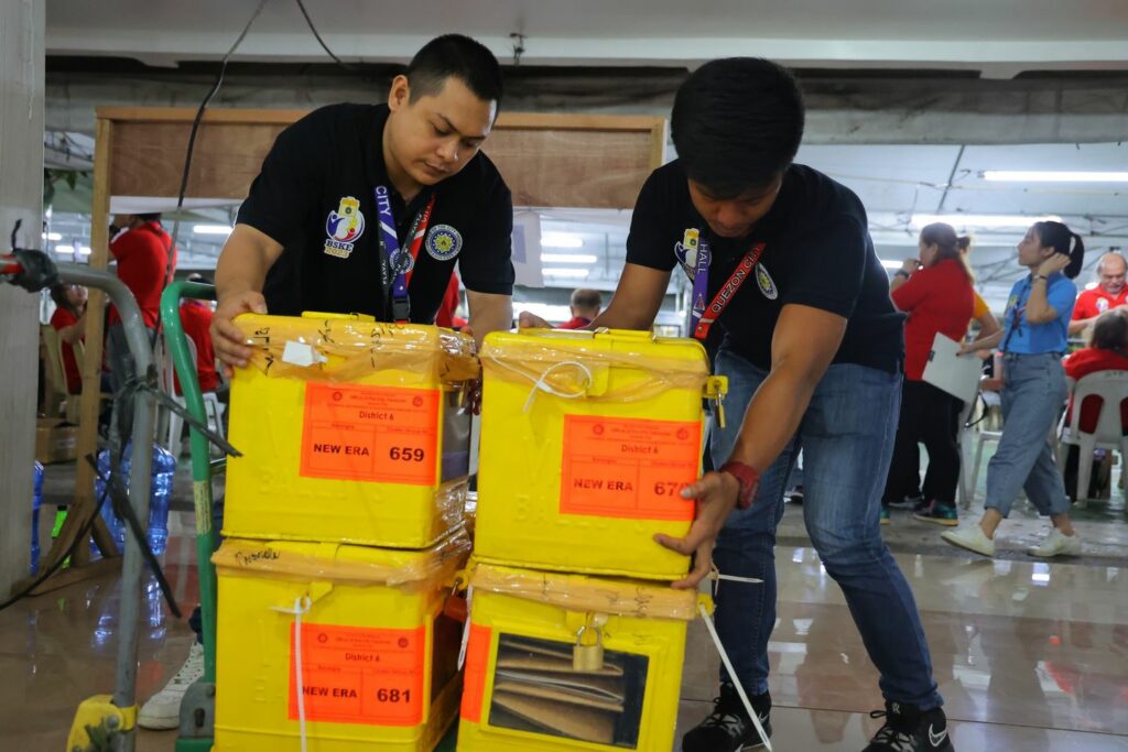 Mula sa 169 polling centers sa anim na distrito, inihahatid sa QC Hall ang mga ballot boxes bago ito i-turn over sa COMELEC.