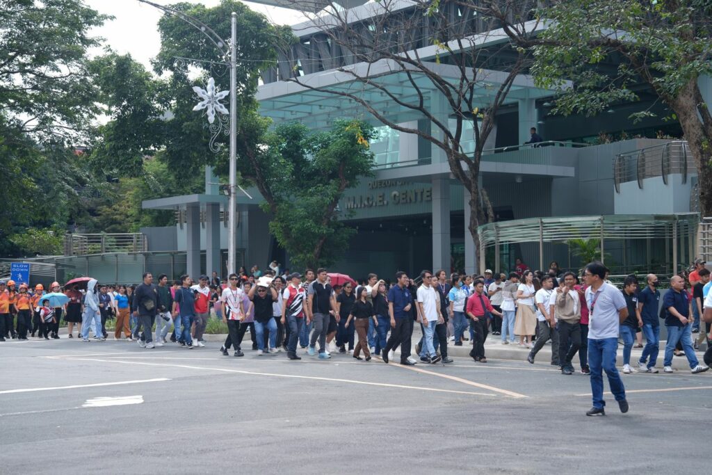 Pagkatapos ng drill, pumunta ang mga empleyado sa mga itinakdang evacuation areas sa loob ng compound.
