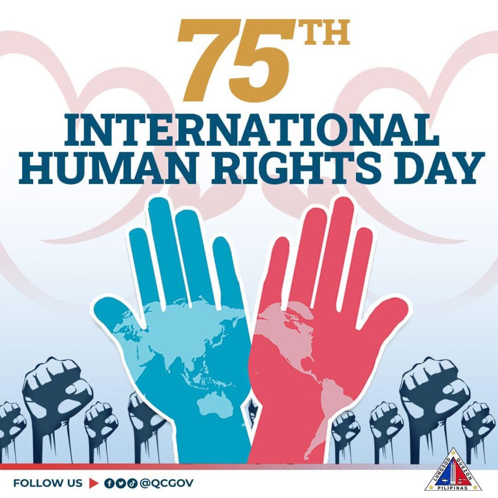 Nakikiisa ang lokal na pamahalaan ng Quezon City sa paggunita ng ika-75 na Araw ng mga Karapatang Pantao (75th International Human Rights Day), kung kailan pinagtibay ang Universal Declaration of Human Rights ng UN General Assembly noong Disyembre 10, 1948.
