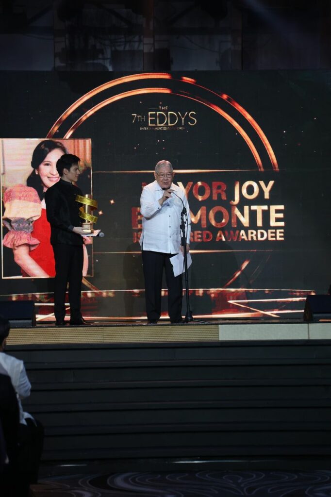 Tinanggap ni former House Speaker & QC Mayor Sonny Belmonte ang Isah V. Red (IVR) Award na iginawad kay Mayor Joy Belmonte sa idinaos na 7th Entertainment Editors’ Choice (EDDYS) Award ng Society of Philippine Entertainment Editors (SPEEd).