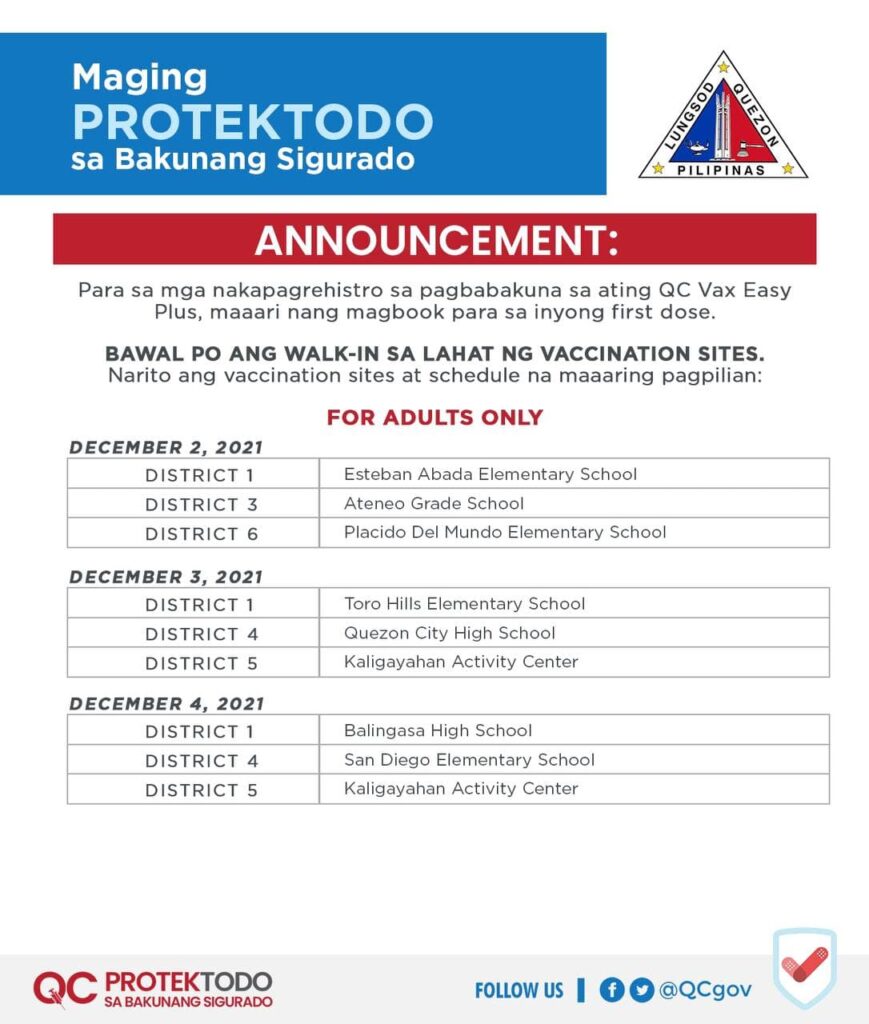 BAWAL ANG WALK-IN SA VACCINATION SITES.