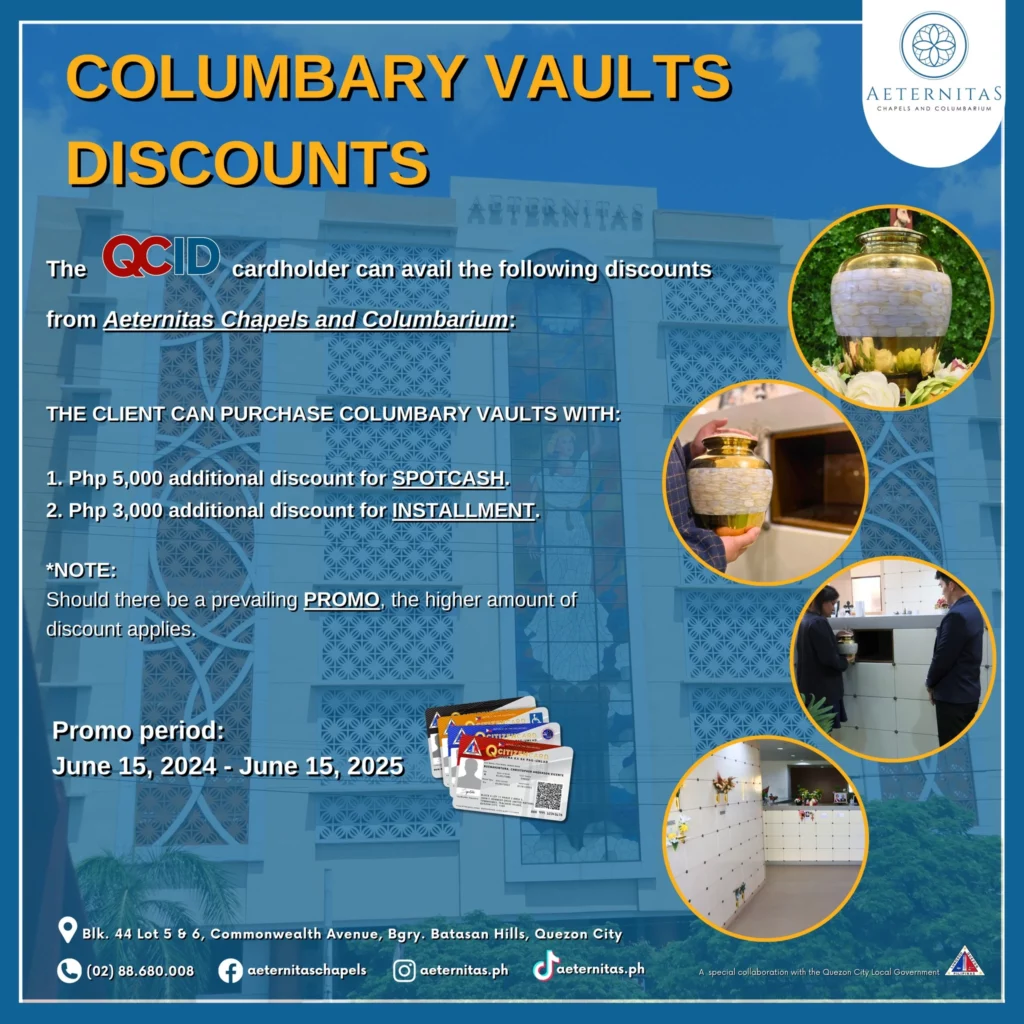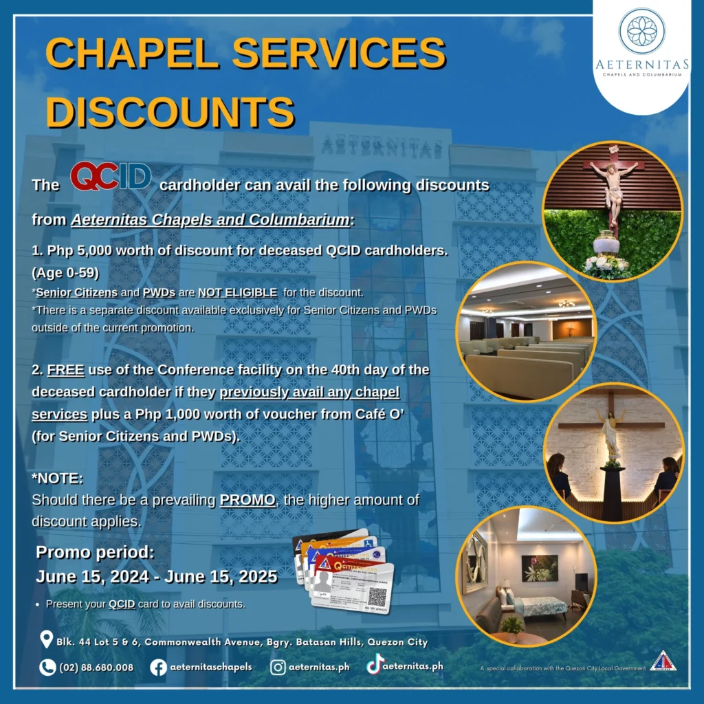 QCitizens, magbibigay ng eksklusibong diskwento ang Aeternitas Chapels and Columbarium sa kanilang chapel services at columbary vaults para sa mga QCID holders!