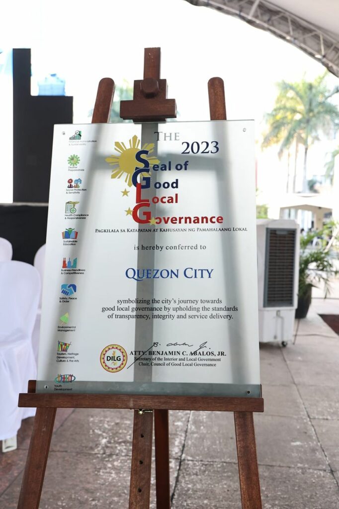 Pormal nang ibinigay ng Department of the Interior and Local Government (DILG) ang Seal of Good Local Governance (SGLG) sa Quezon City Government.