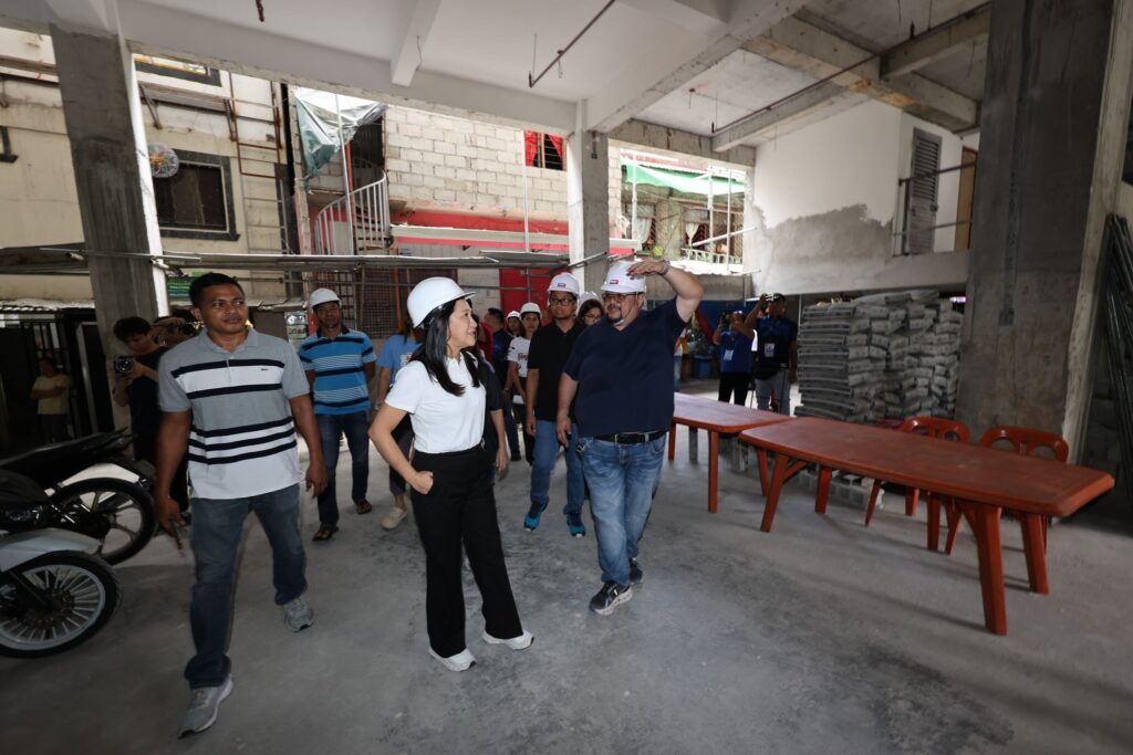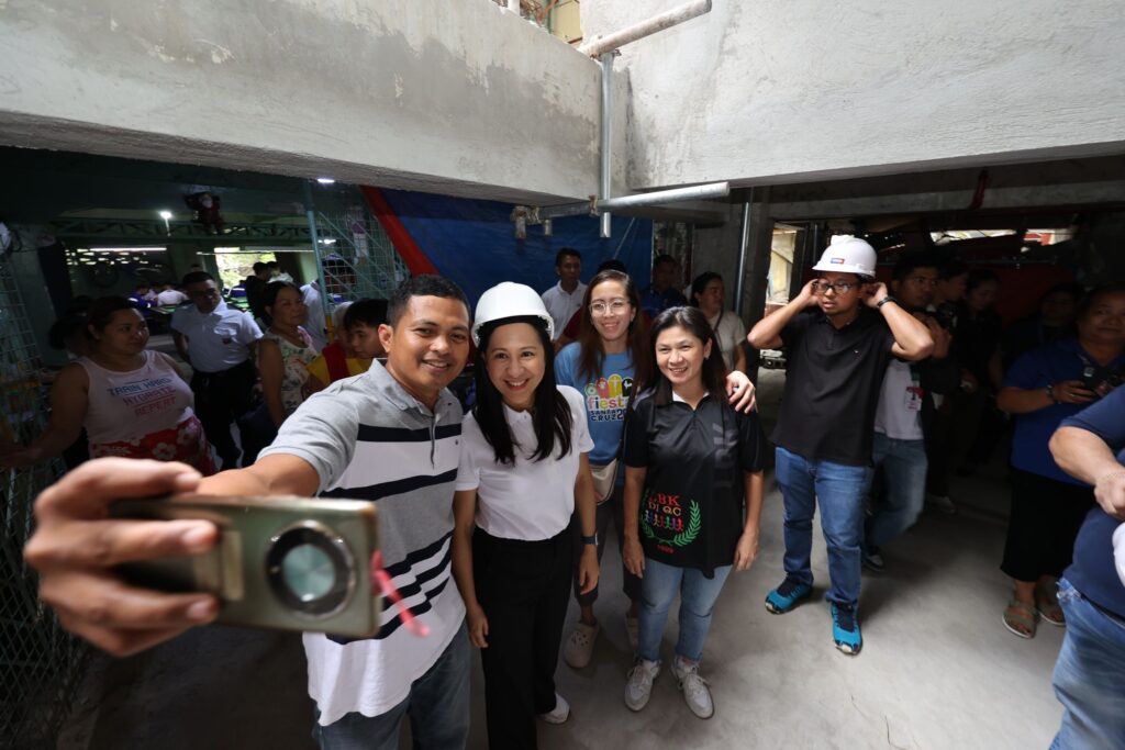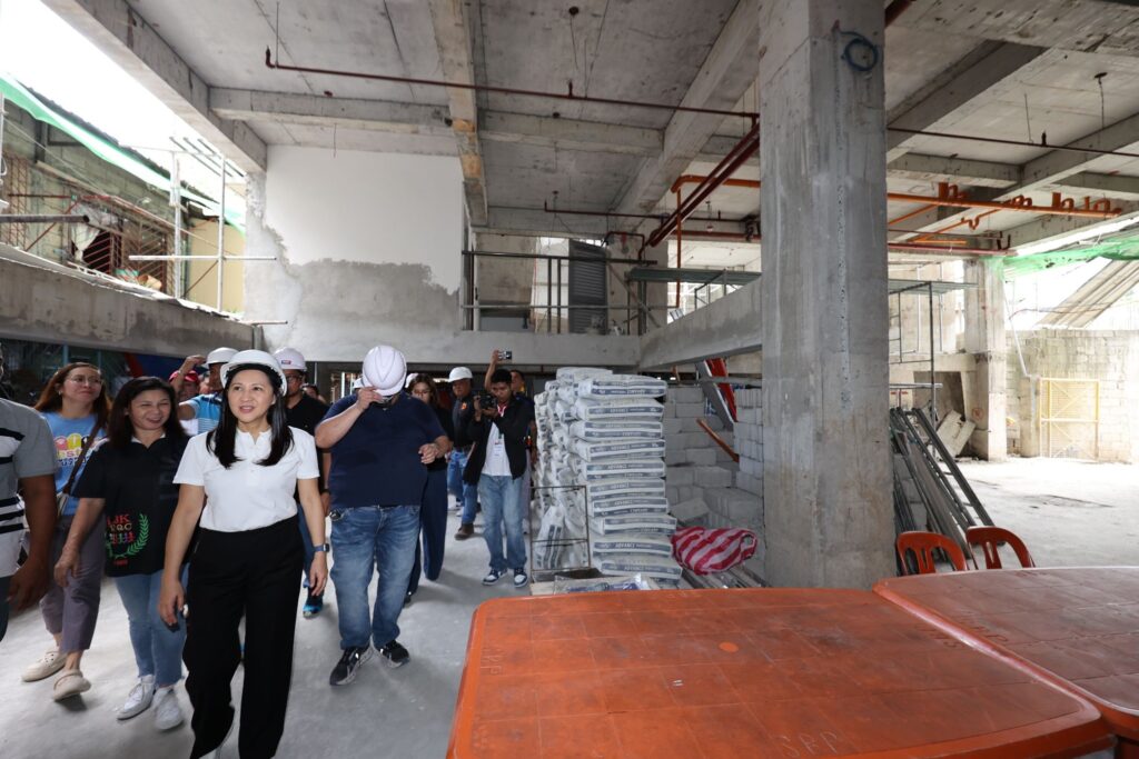Nag-inspeksyon sina Mayor Joy Belmonte, Chief of Staff Rowena Macatao, City Engineer Atty. Dale Perral, at District 1 Action Officer Ollie Belmonte sa on-going construction ng three-storey multipurpose hall ng barangay.