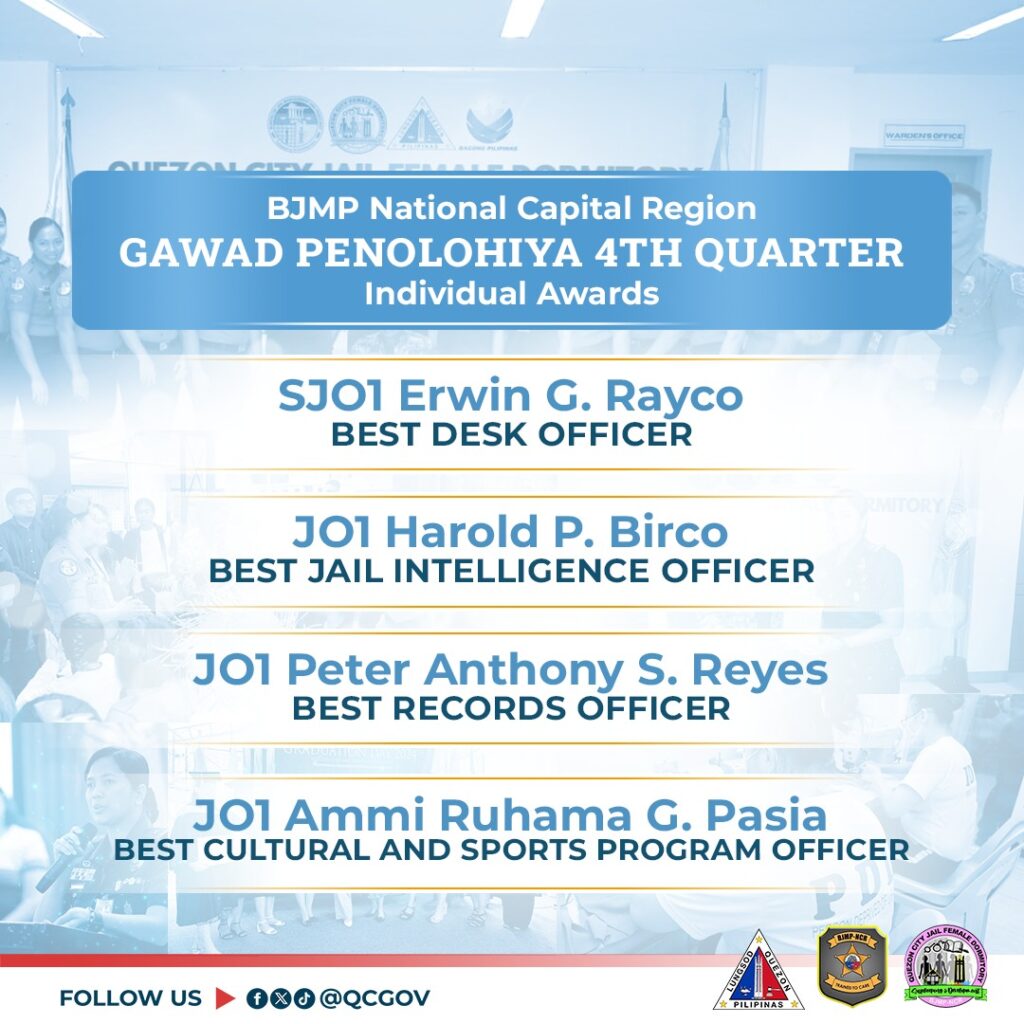 Nag-uwi ng 9 na parangal ang QCJFD mula sa Bureau of Jail Management and Penology (BJMP) – NCR sa ginanap na 4th Quarter Regional Management Conference 2024.