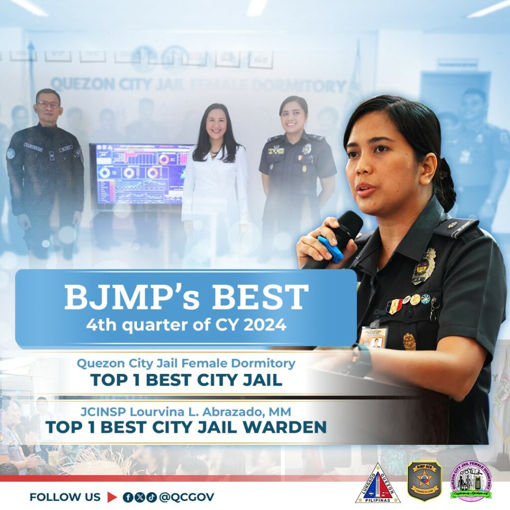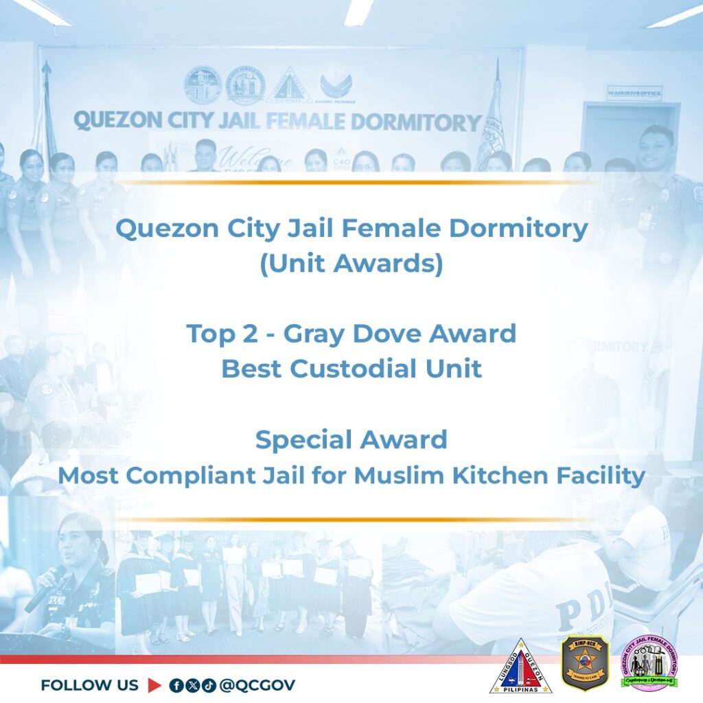 Kinilala bilang Best City Jail ang QC Jail Female Dormitory habang Best City Jail Warden naman si JCInsp Lourvina Abrazado, MM (Female Dormitory Category).