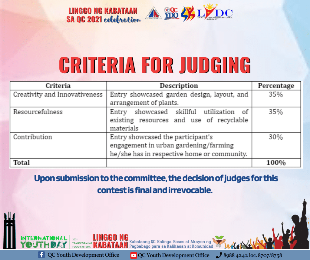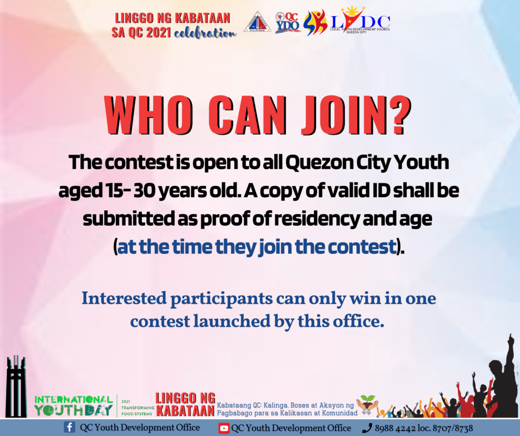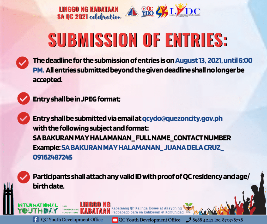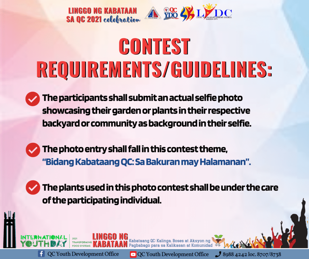 August 9, 2021Kabataang QC! Ibida ang Halamanan sa Bakuran! Sumali sa ating Linggo ng Kabataan 2021: Bidang Kabataang QC: Sa Bakuran may Halamanan Virtual Contest.Sasali ang anak ni Aling Vicky! Magpapahuli ka ba? Lez go, join na!Basahin ang mechanics kung paano sumali. Bukod sa maibabahagi mo sa ating Kabataang QC ang Halamanan sa Bakuran, maari ka rin manalo ng ating papremyo.