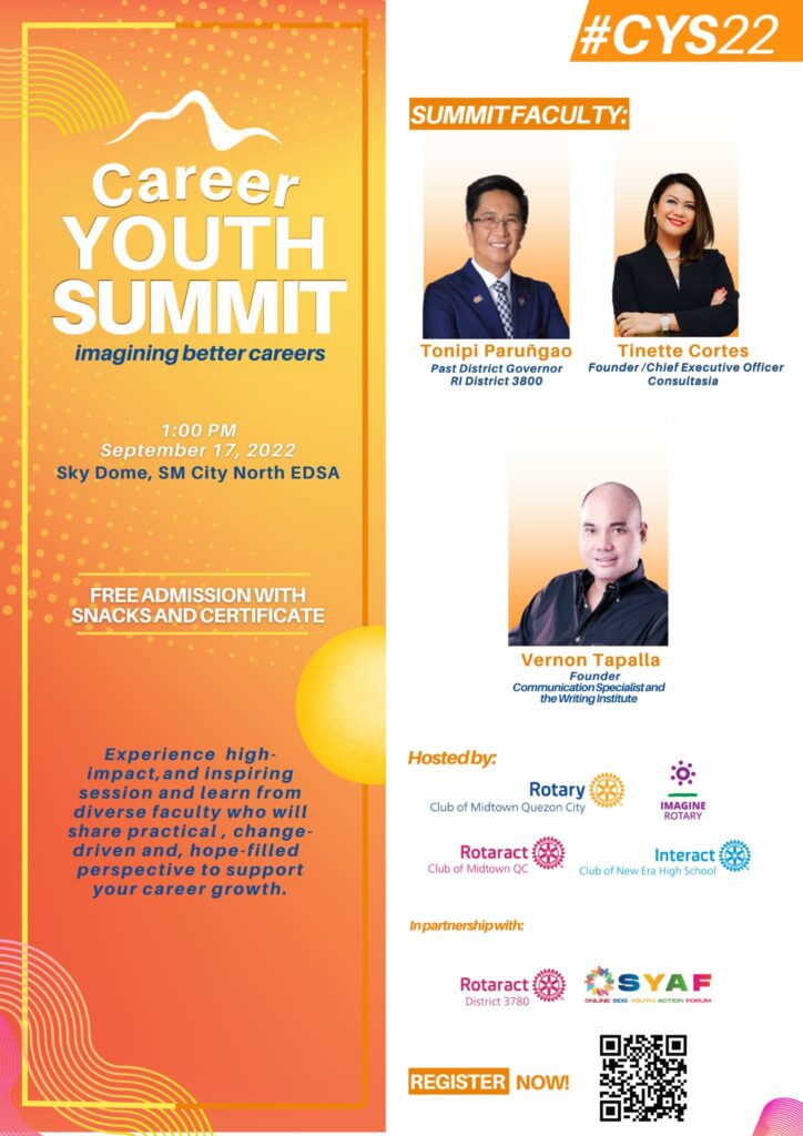 Register now until September 14, 2022 at https://bit.ly/CYS2022RegForm and join us on September 17, 2022 at the SM SkyDome of SM City North EDSA from 1:00PM to 5:00PM.
