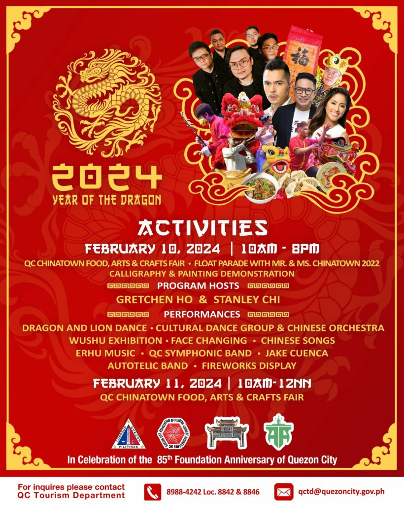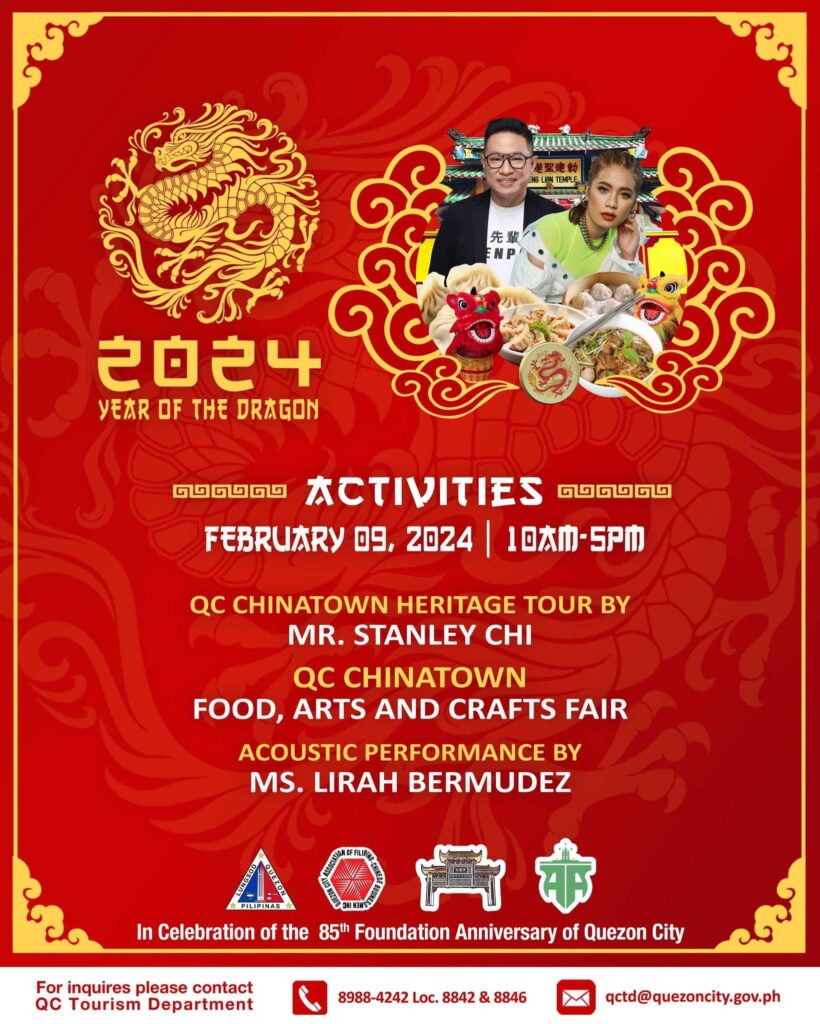 Join us from February 9 to 11 at the Quezon City’s Chinatown along Banawe Avenue (Z Square Mall) corner Del Monte road. Get the chance to win exciting prizes, savor the delicious Chinese food, be entertained by cultural performances and concert and watch the fireworks display!
