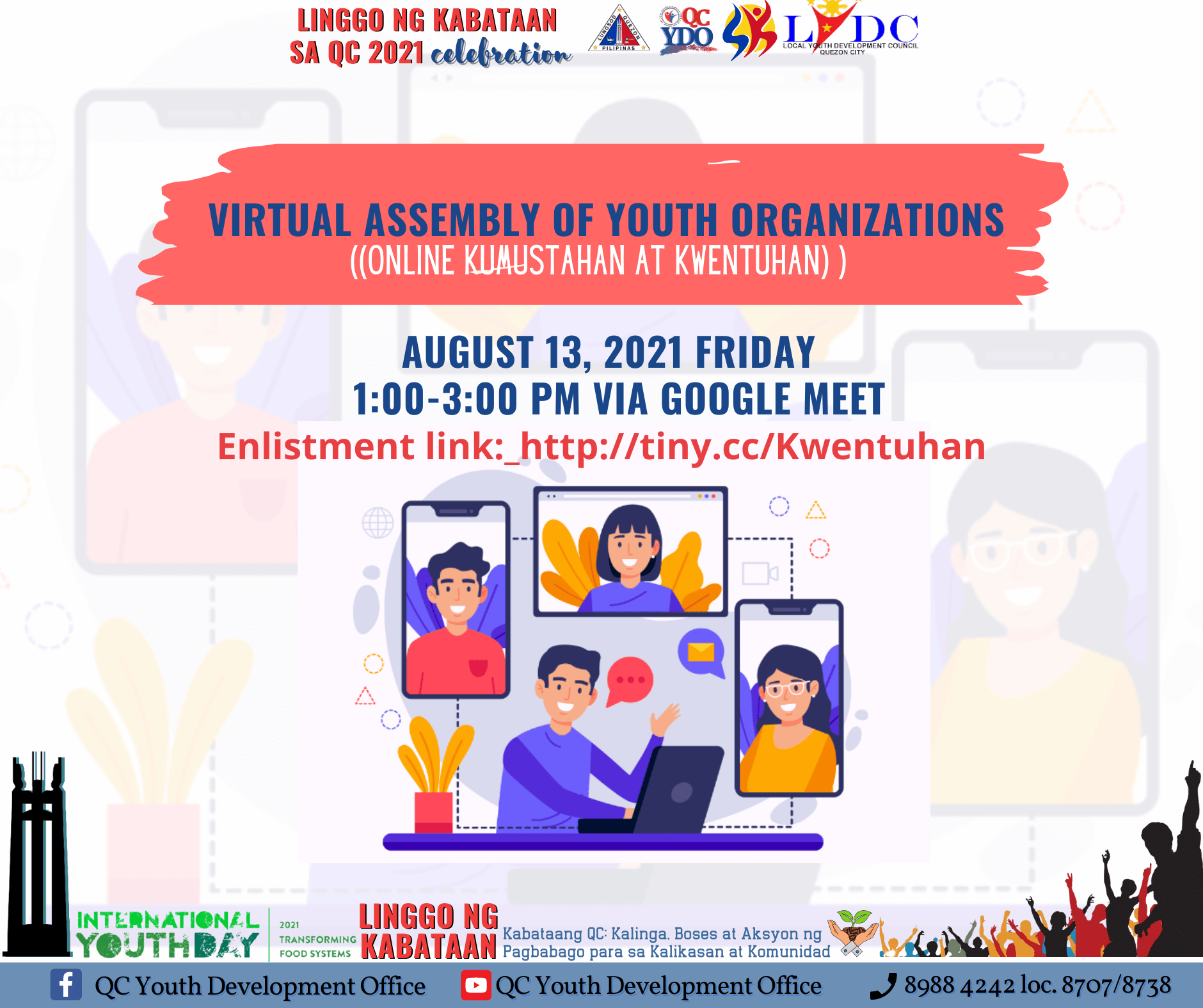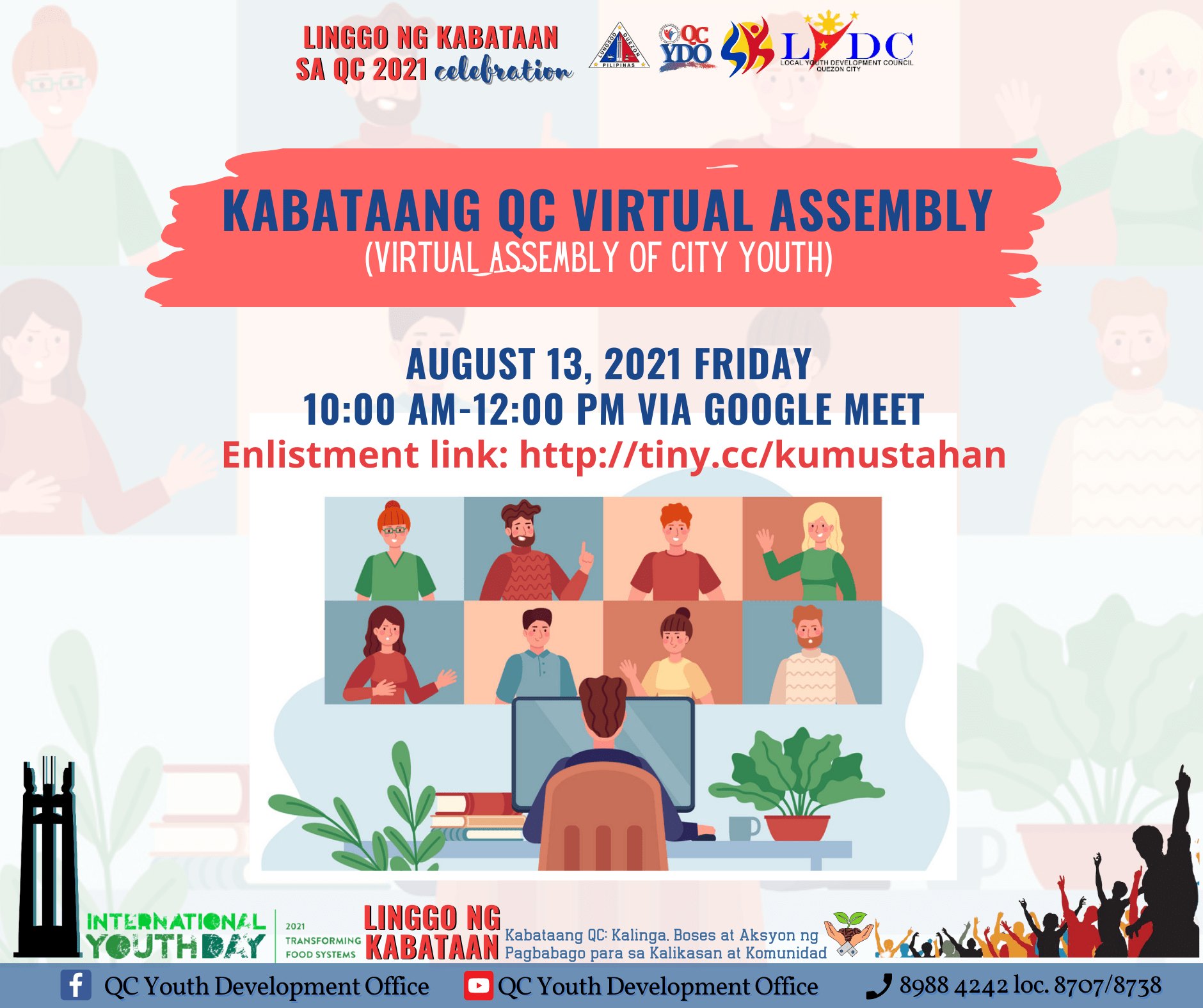 Kabataang QC Virtual Assembly: http://tiny.cc/kumustahan 10:00 AM-12:00 PM