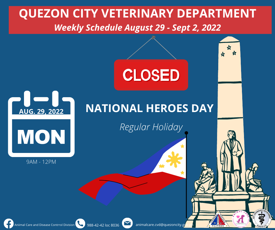 QC Veterinary Schedule August 29 – Sept. 2, 2022