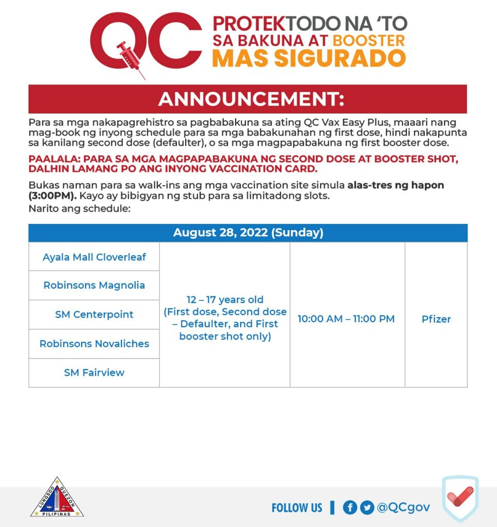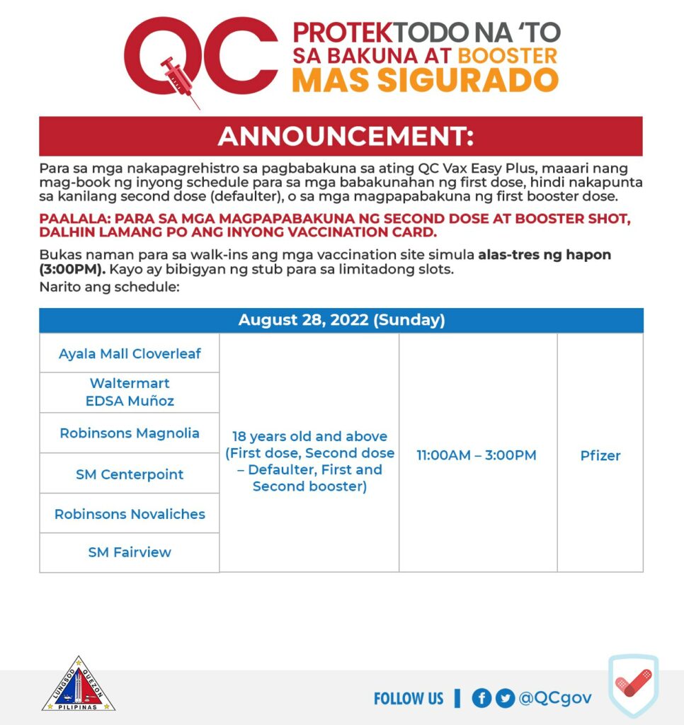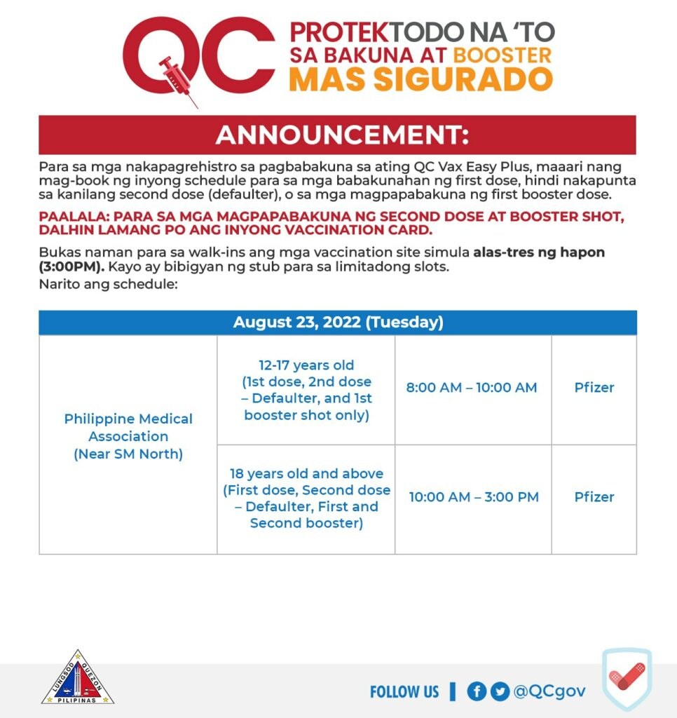 Para sa magpapabakuna ng second dose at booster shot, dalhin lang ang valid ID at #QCProtekTODO Vaccination Card.