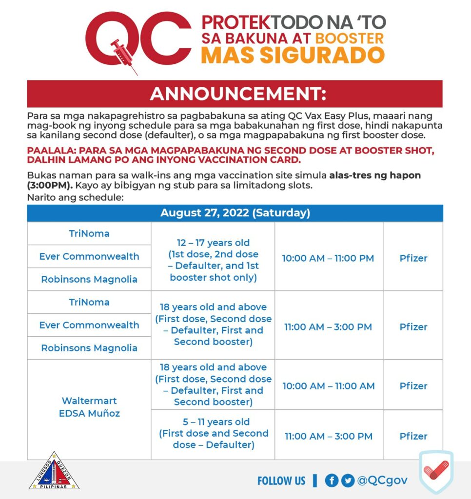 August 23, 2022Maaari nang mag-book ng first dose, missed second dose (defaulter), at booster shot ang mga edad 18 taong gulang pataas.