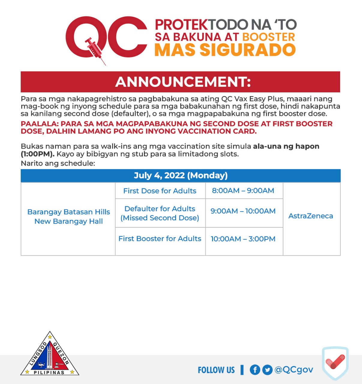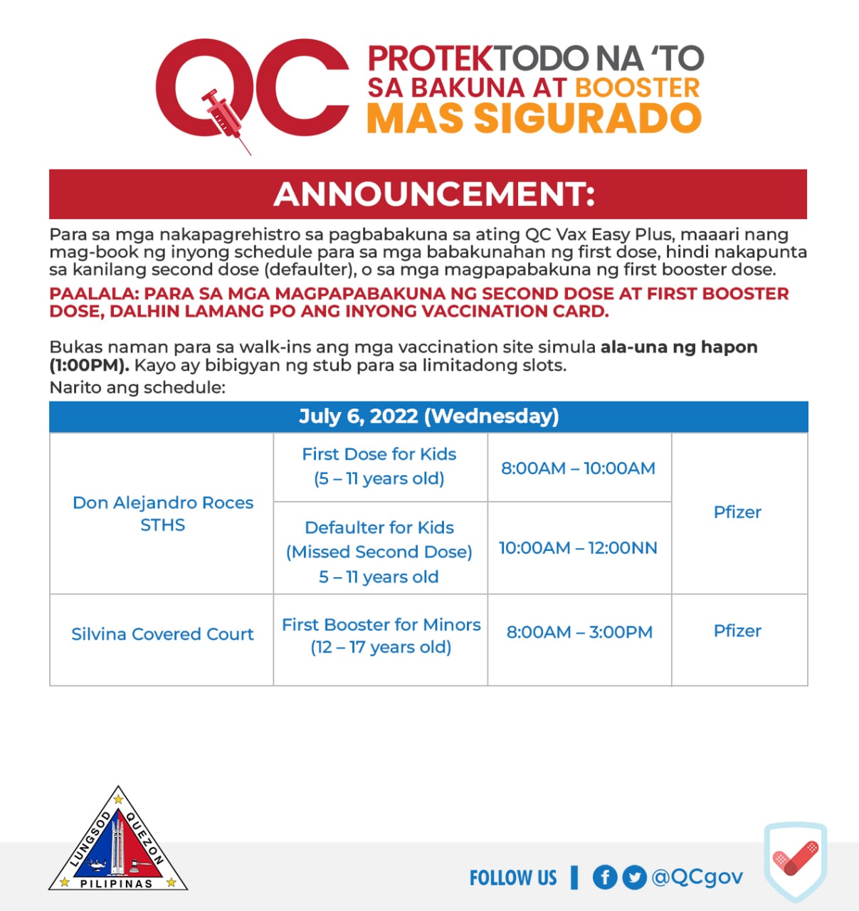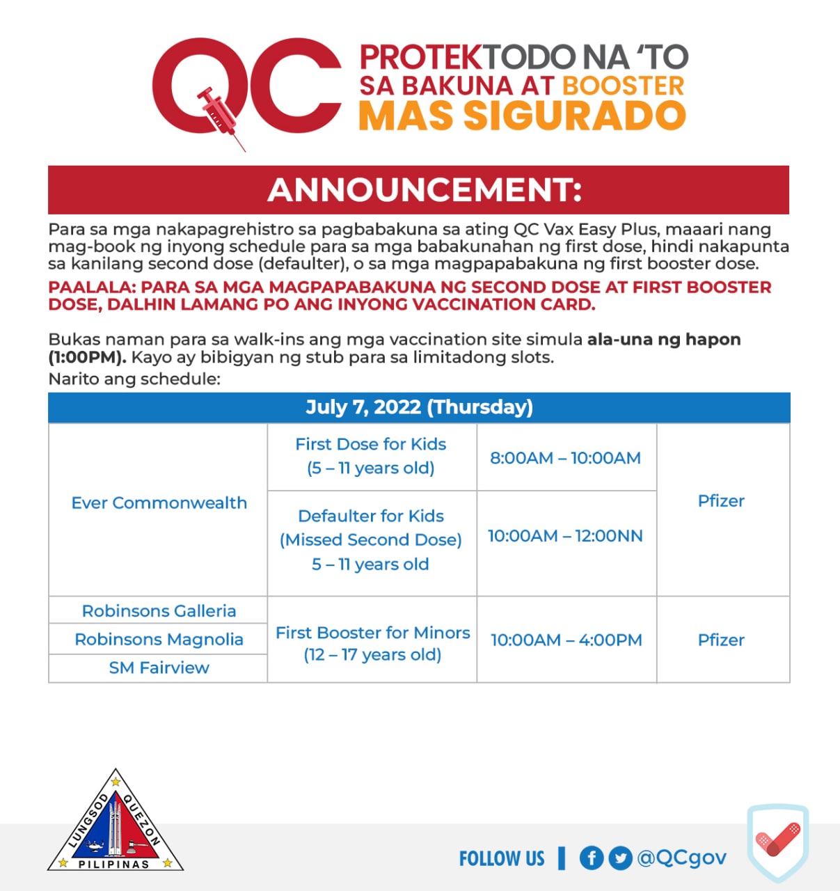 Magrehistro lang sa QC Vax Easy Plus (https://qceservices.quezoncity.gov.ph/qcvaxeasy) at pumili sa vaccination sites at schedule.
