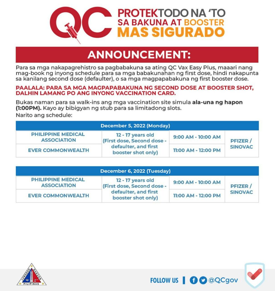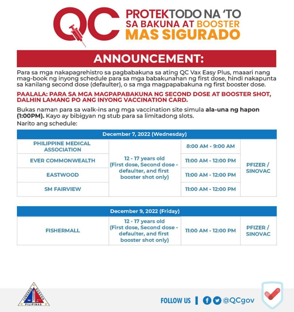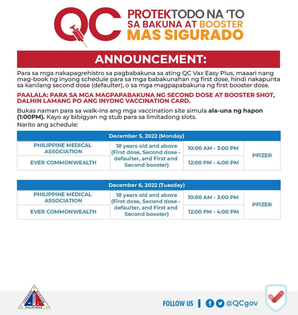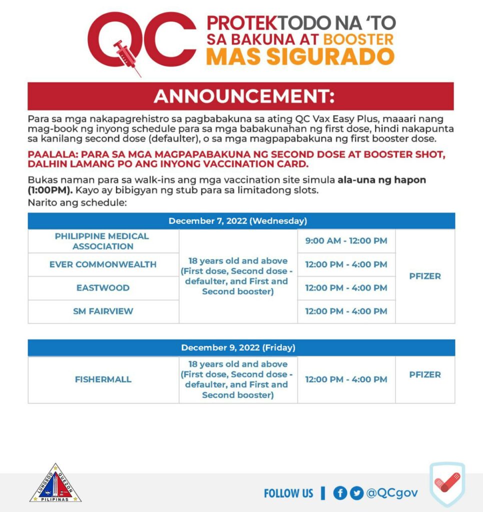 • For all adults aged 50 and above and individuals 18-49 with comorbidities: https://www.facebook.com/QCGov/posts/pfbid036nNXthWv8yatWsvgNNUek7WvybpSsgTCwmiTkDrmYuT2FkNaFebinDvoEwCYvjbxl