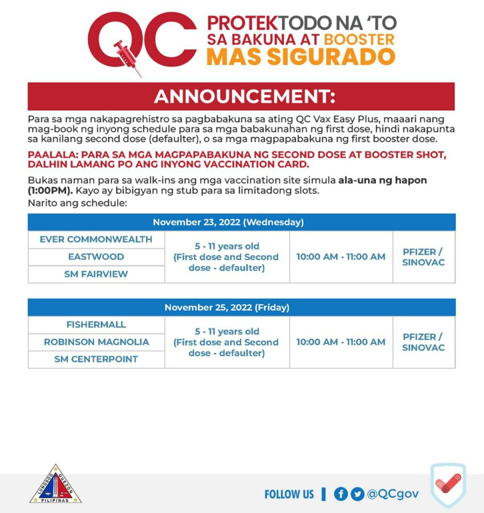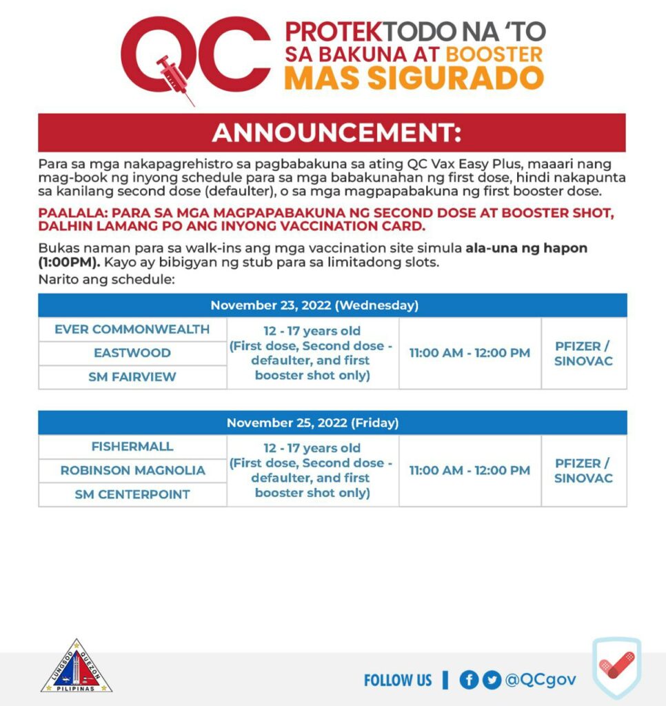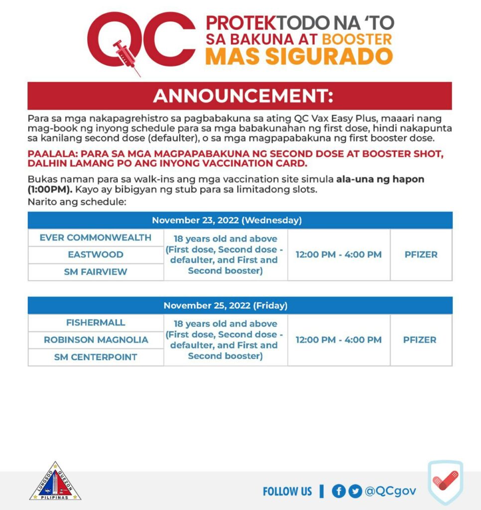 Para sa magpapabakuna ng second dose at booster shot, dalhin lang ang valid ID at #QCProtekTODO Vaccination Card.