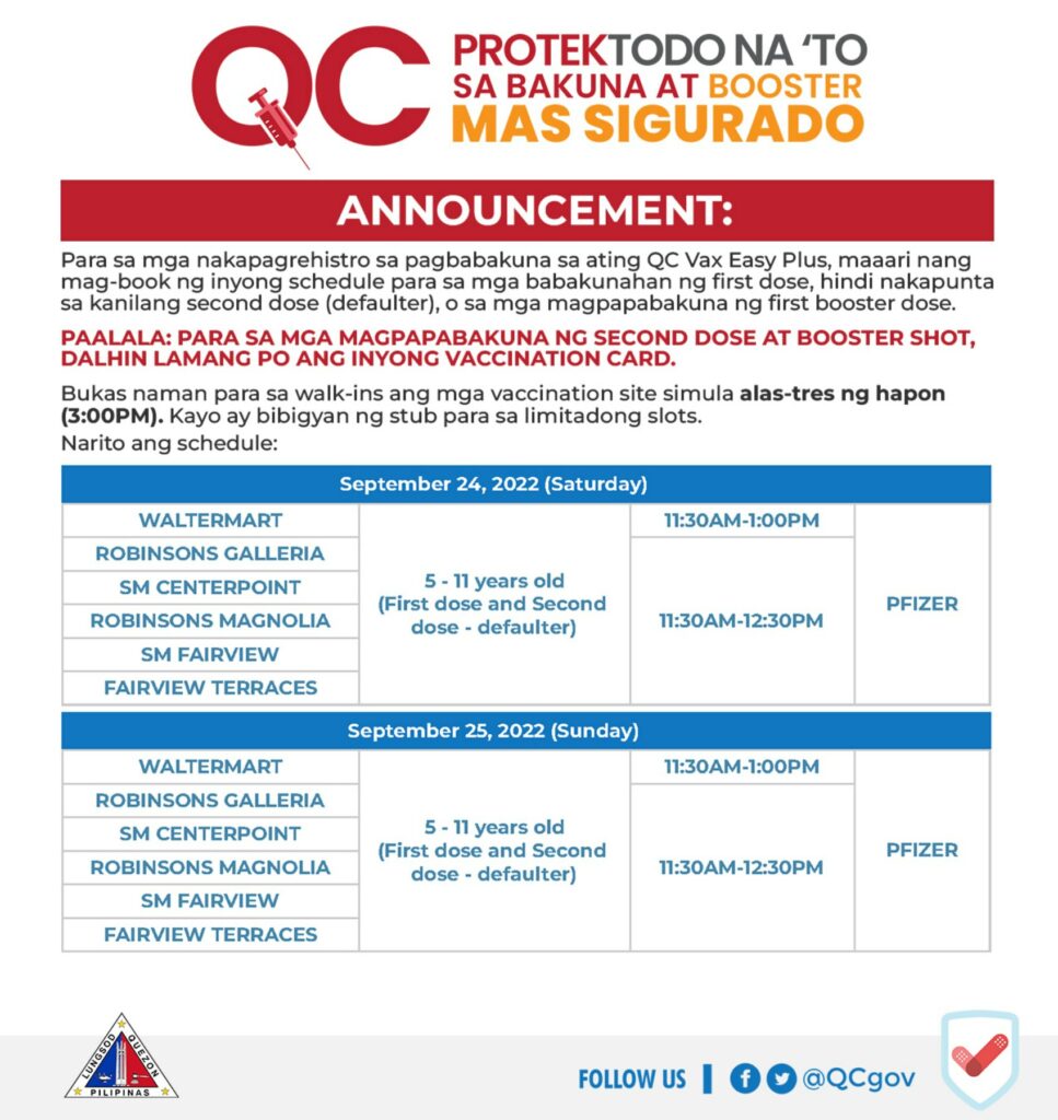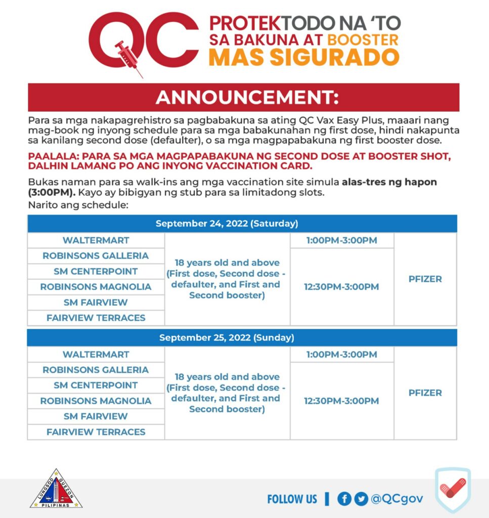 Vaccination Schedule – September 24 & 25, 2022