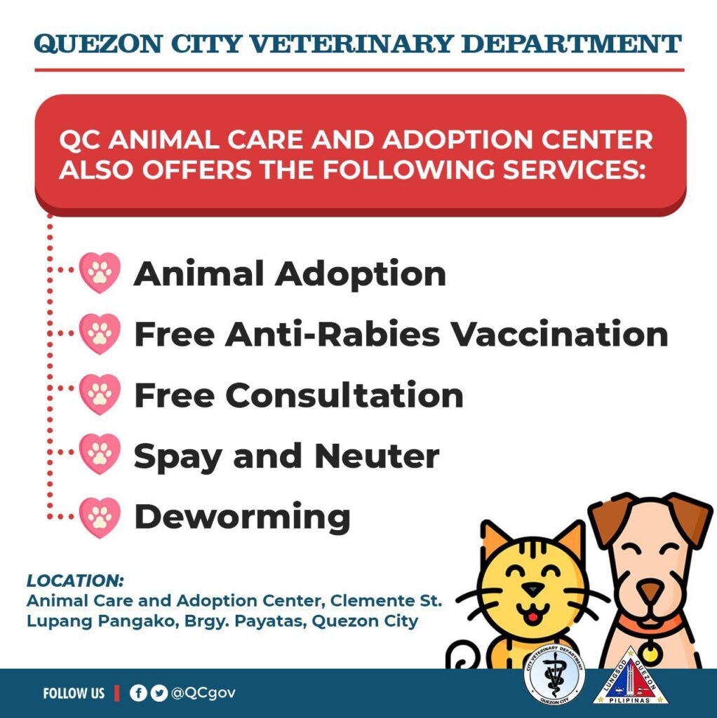 For further inquiries on pet adoption and other services, just visit Quezon City Animal Care and Adoption Center Facebook page.