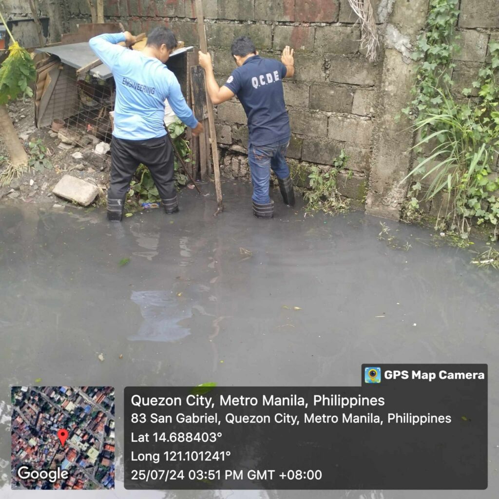TINGNAN: Nagsagawa ng cleanup at declogging operations ang QC Engineering Department sa San Gabriel St. sa Brgy. Batasan Hills para alisin ang mga basurang bumara sa line canal matapos ang pananalasa bagyong #CarinaPH at habagat.