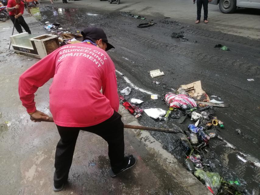 Kasalukuyang nagsasagwa ng cleaning operations ang mga tauhan ng QC Engineering Department at Department of Sanitation and Cleanup Works sa G. Araneta, Brgy. Tatalon, upang linisin ang nagkalat na basura dahil sa nagdaang bagyong #CarinaPH
