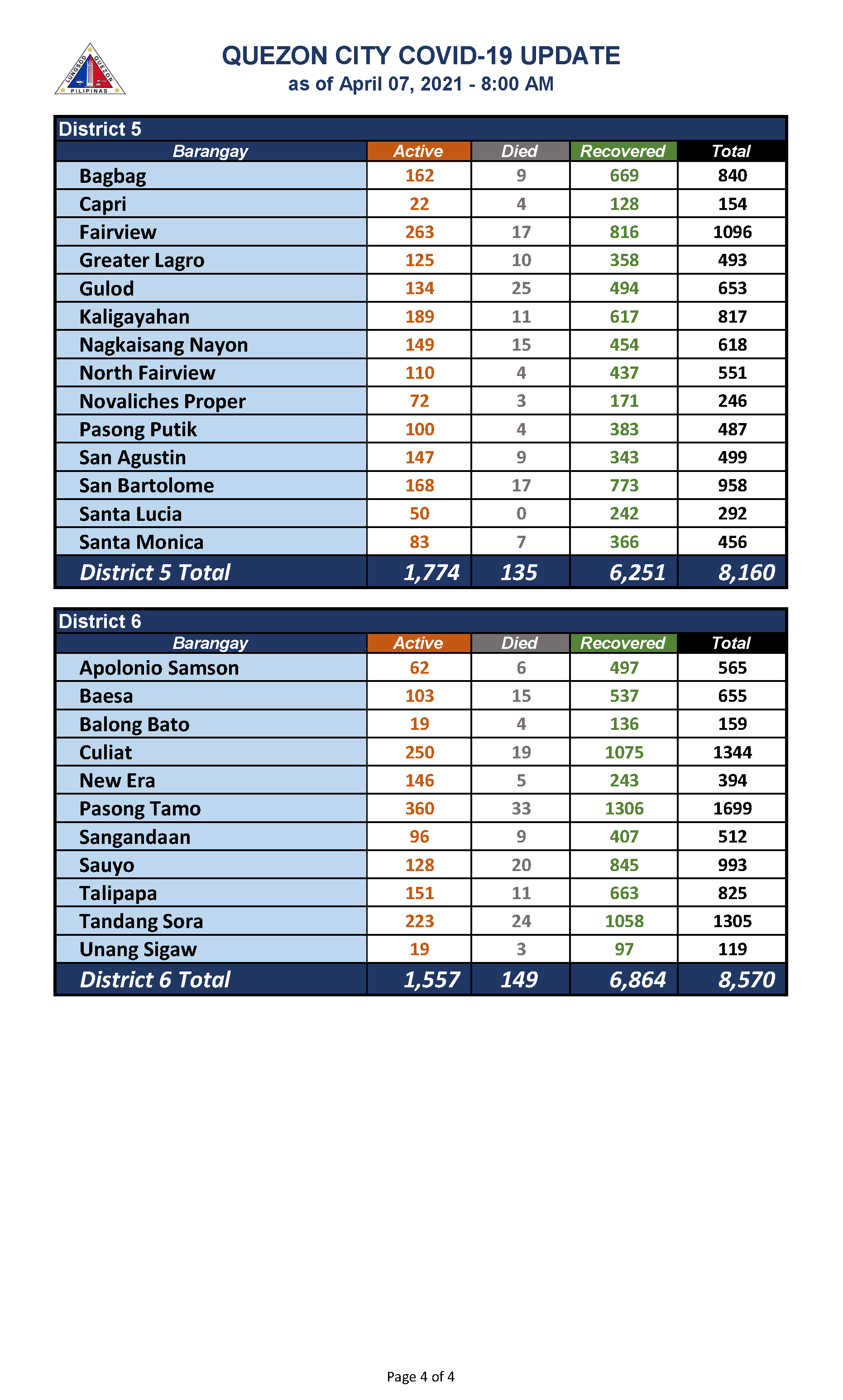 QC COVID-19 UPDATE – AS OF April 07, 2021 – 8AM