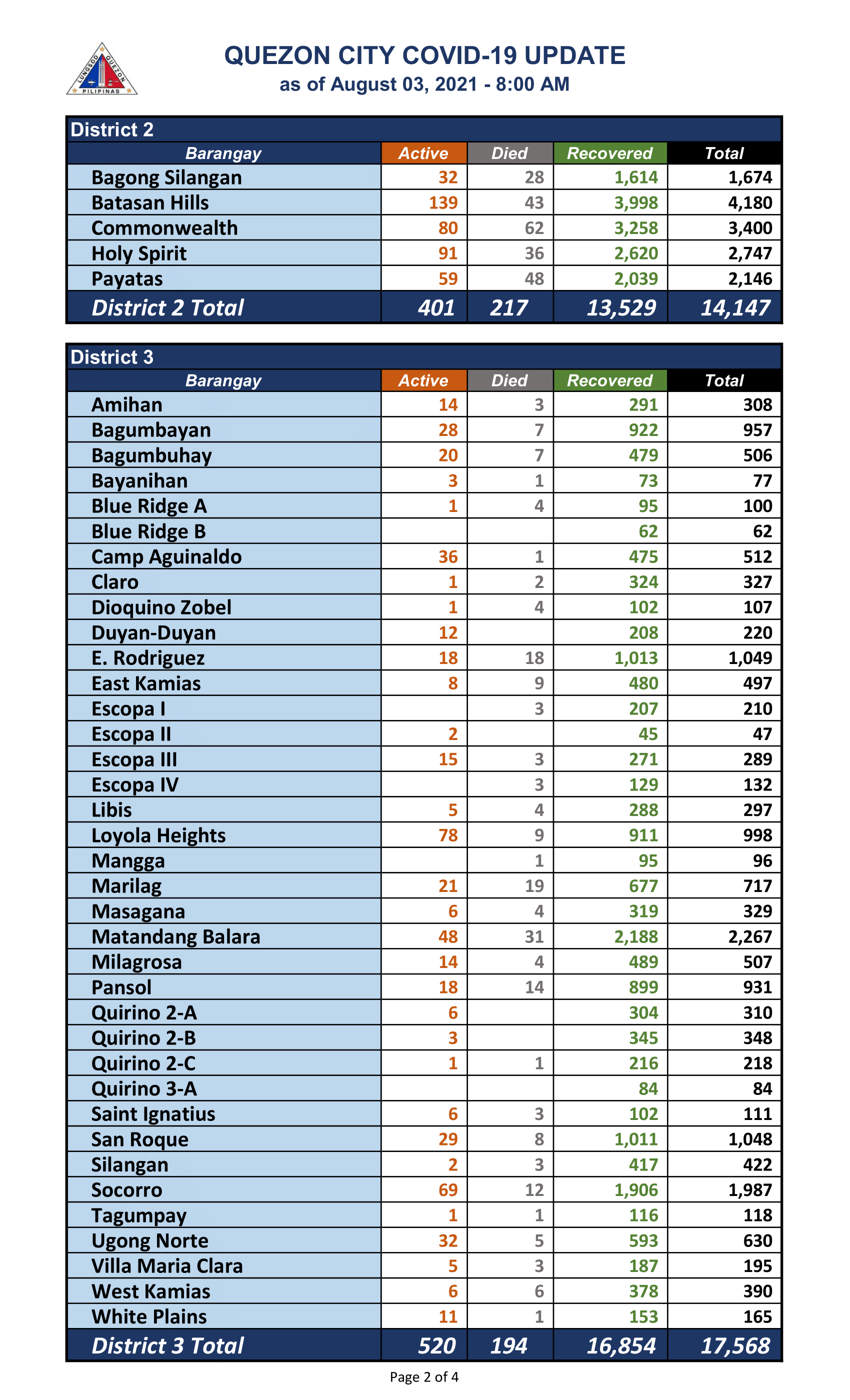 QC COVID-19 UPDATE – AS OF August 03, 2021 – 8AM