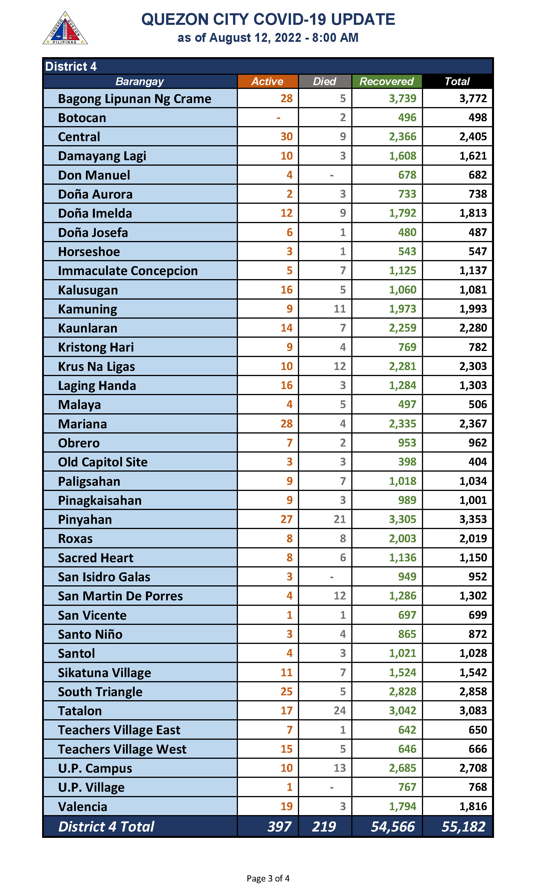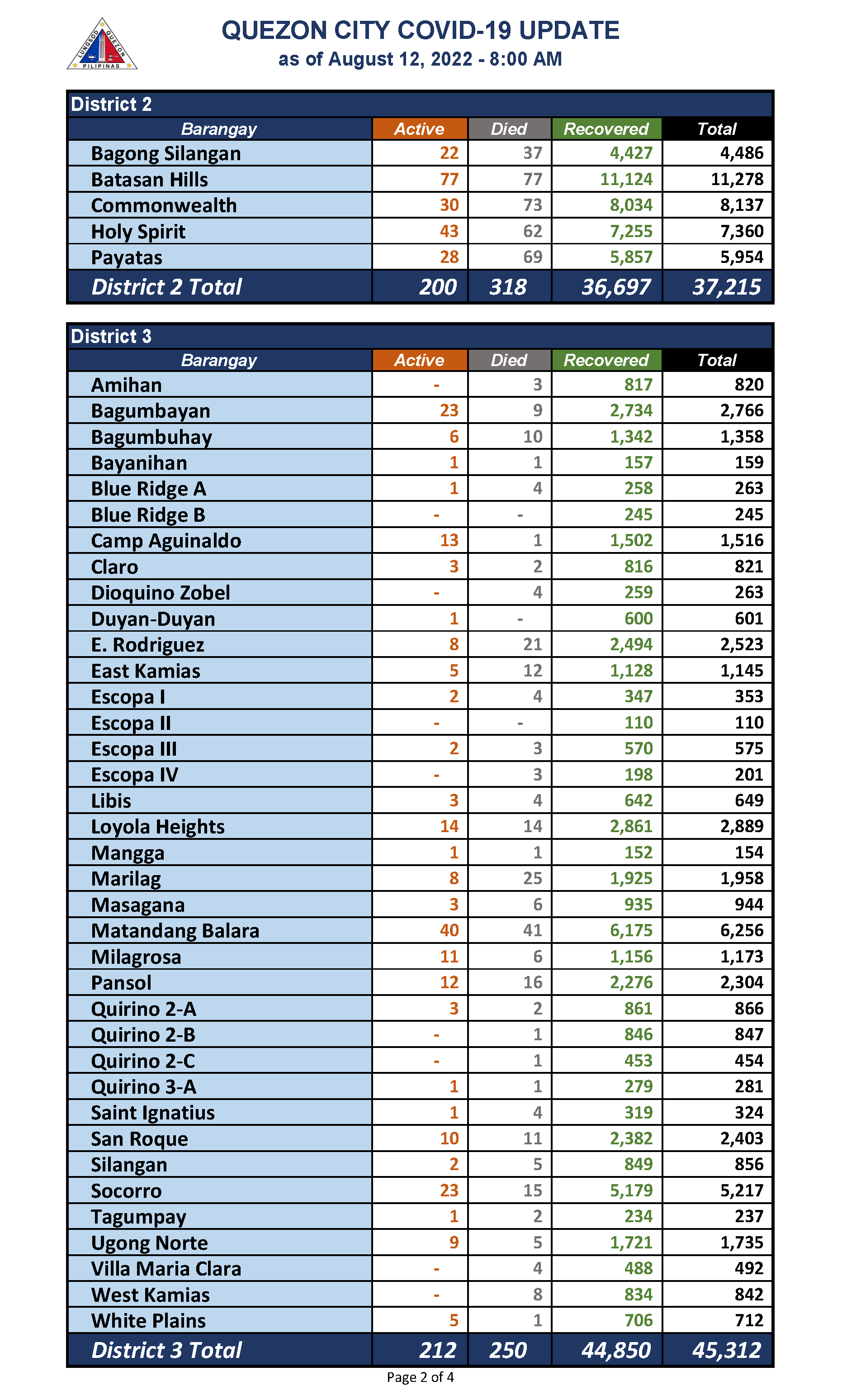 QC COVID-19 UPDATE – AS OF August 12, 2022 – 8AM