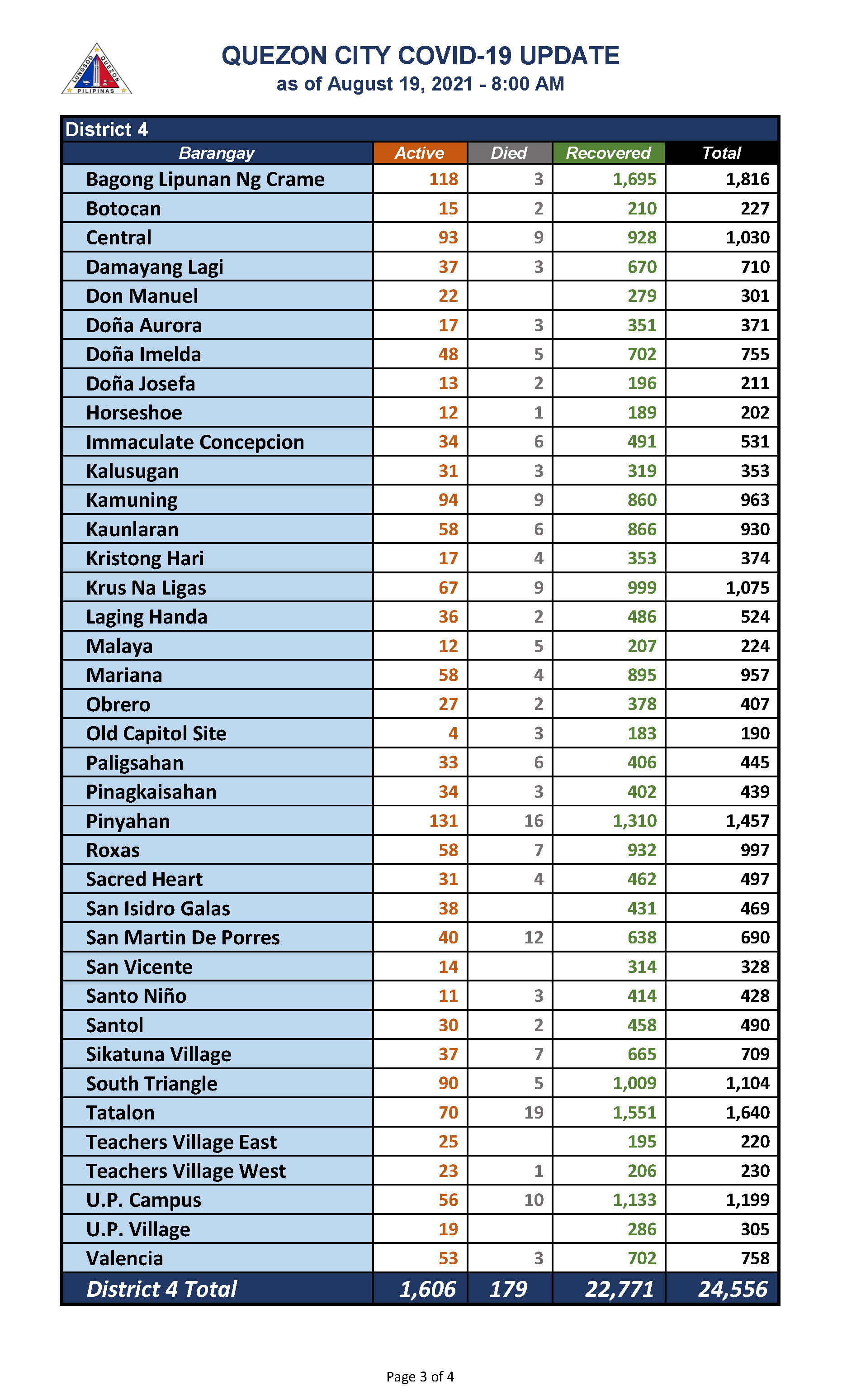 QC COVID-19 UPDATE – AS OF August 19, 2021 – 8AM