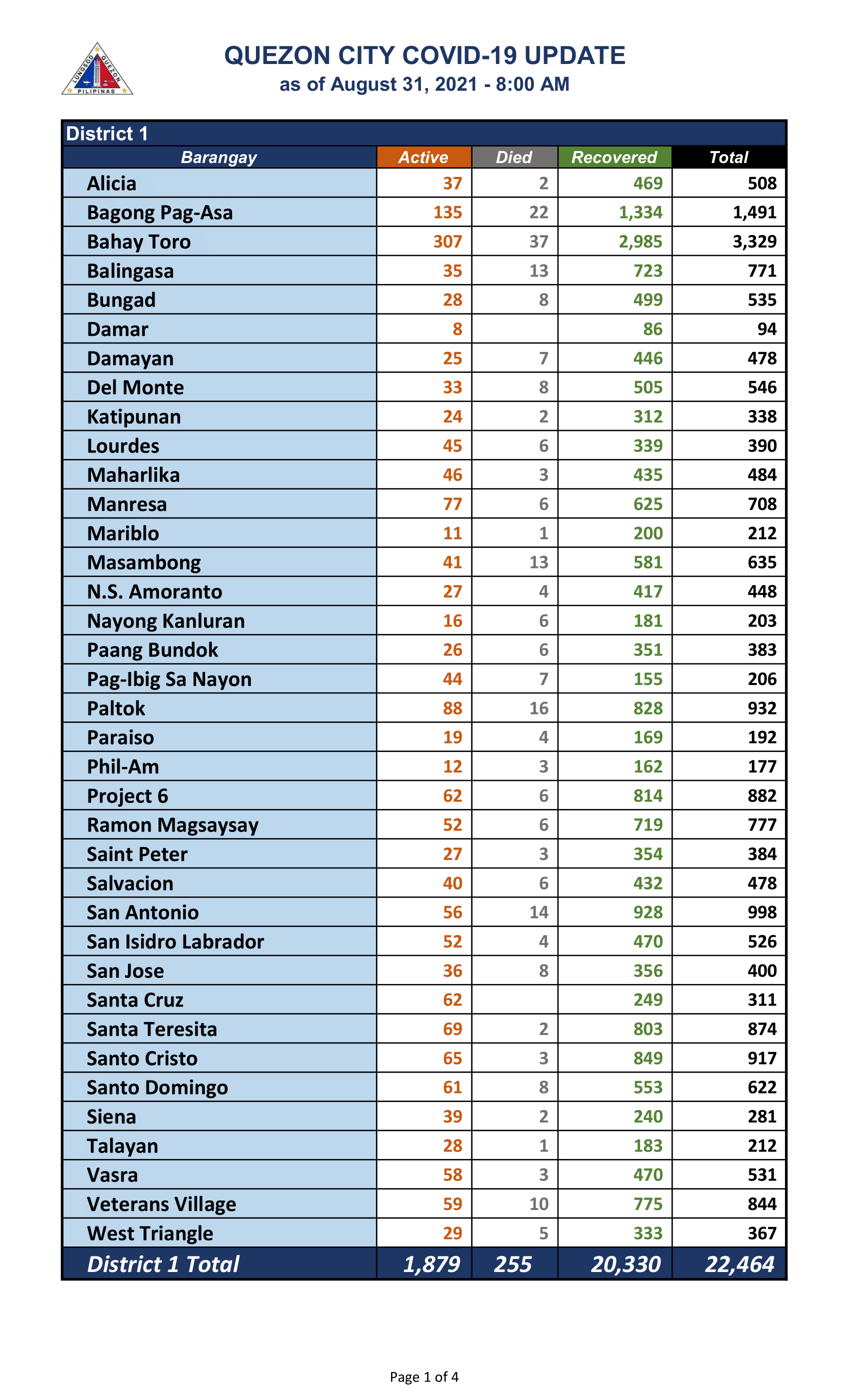 QC COVID-19 UPDATE – AS OF September 01, 2021 – 8AM
