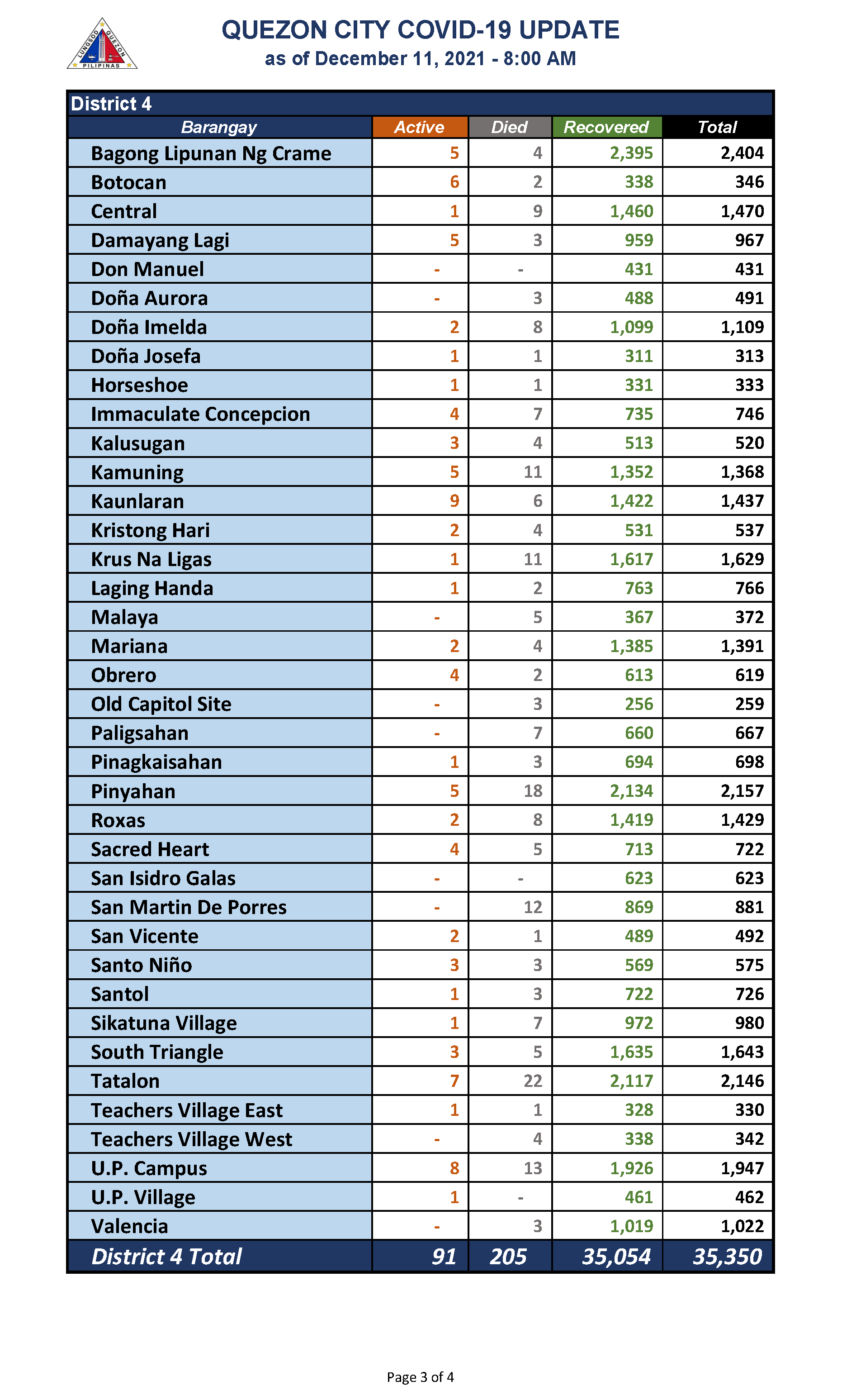 QC COVID-19 UPDATE – AS OF December 11, 2021 – 8AM