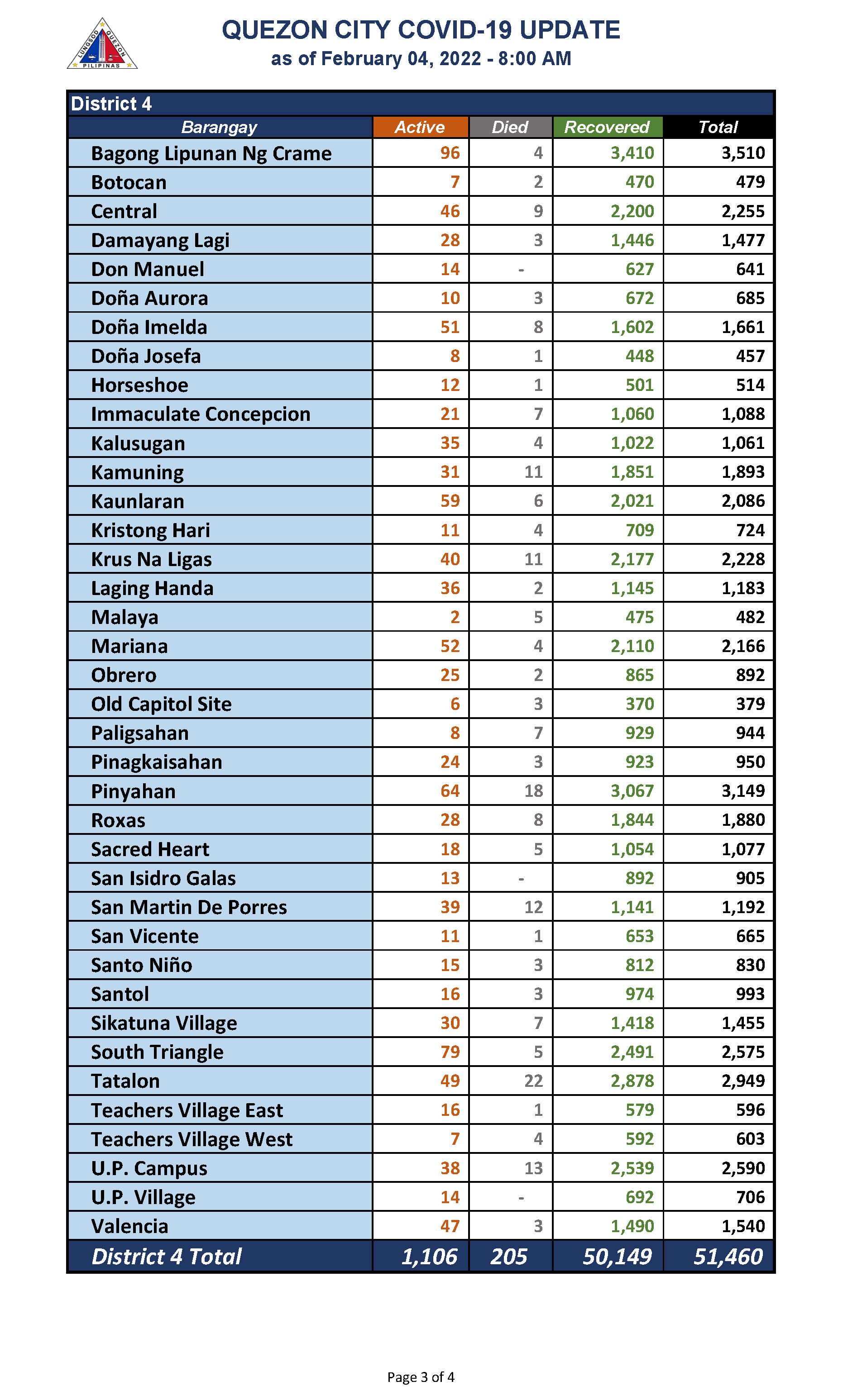 QC COVID-19 UPDATE – AS OF February 04, 2022 – 8AM