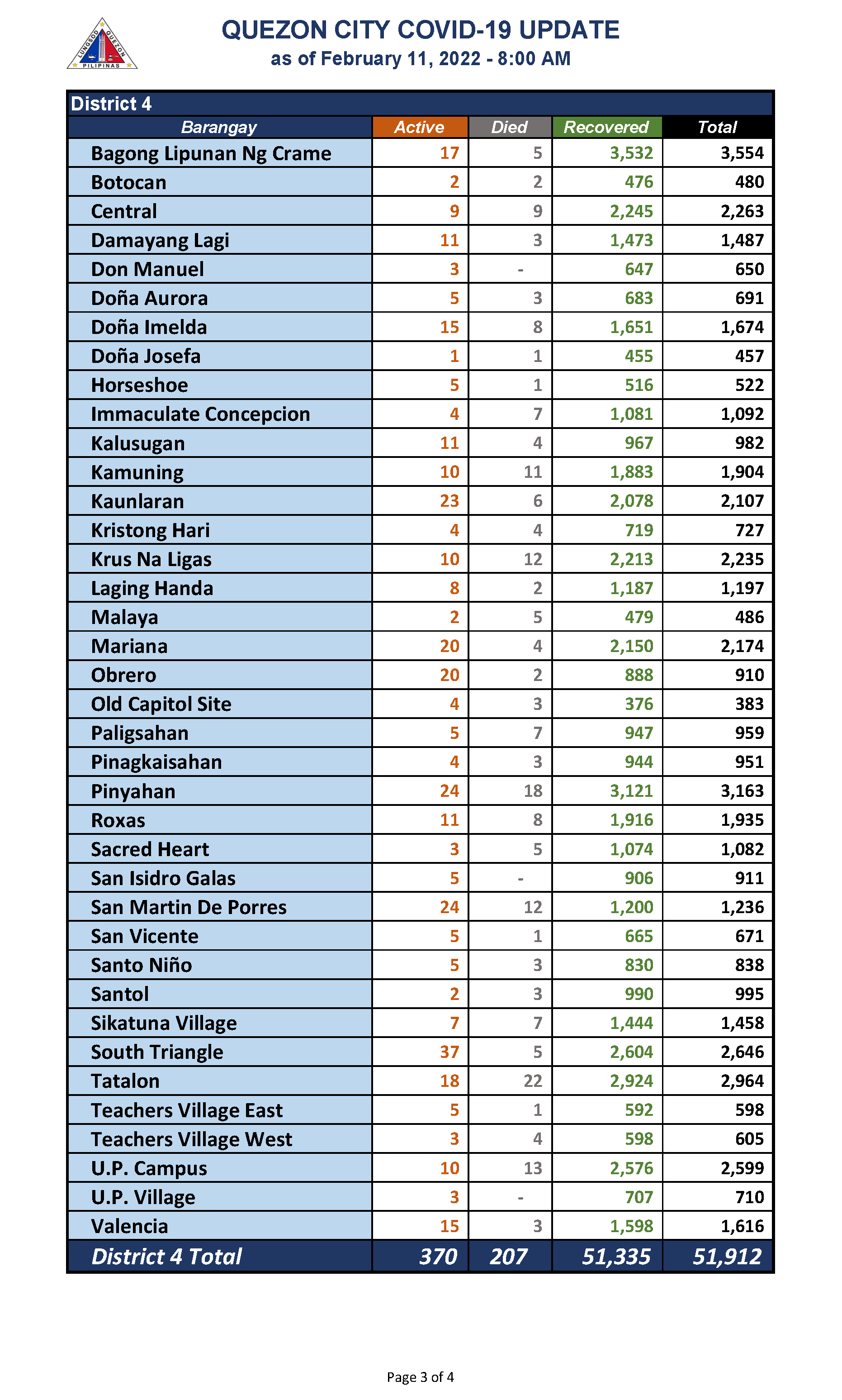 QC COVID-19 UPDATE – AS OF February 11, 2022 – 8AM