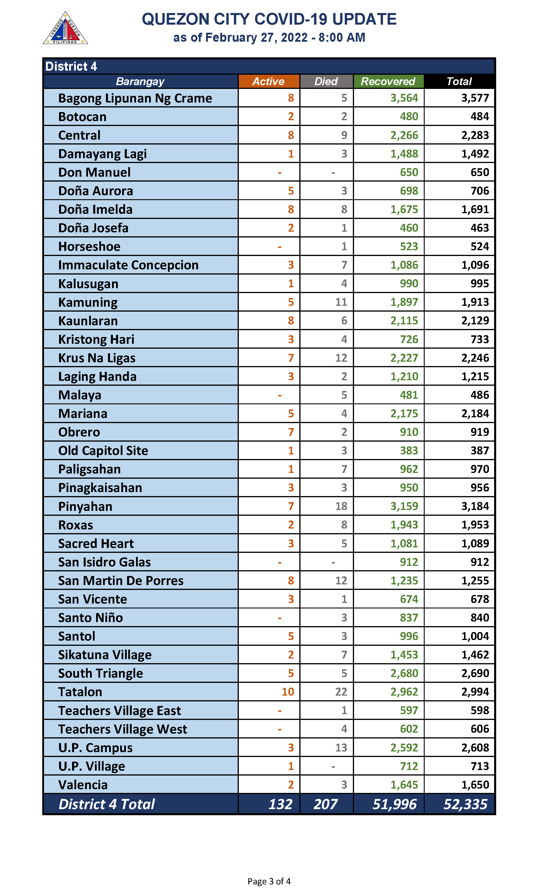 QC COVID-19 UPDATE – AS OF February 27, 2022 – 8AM