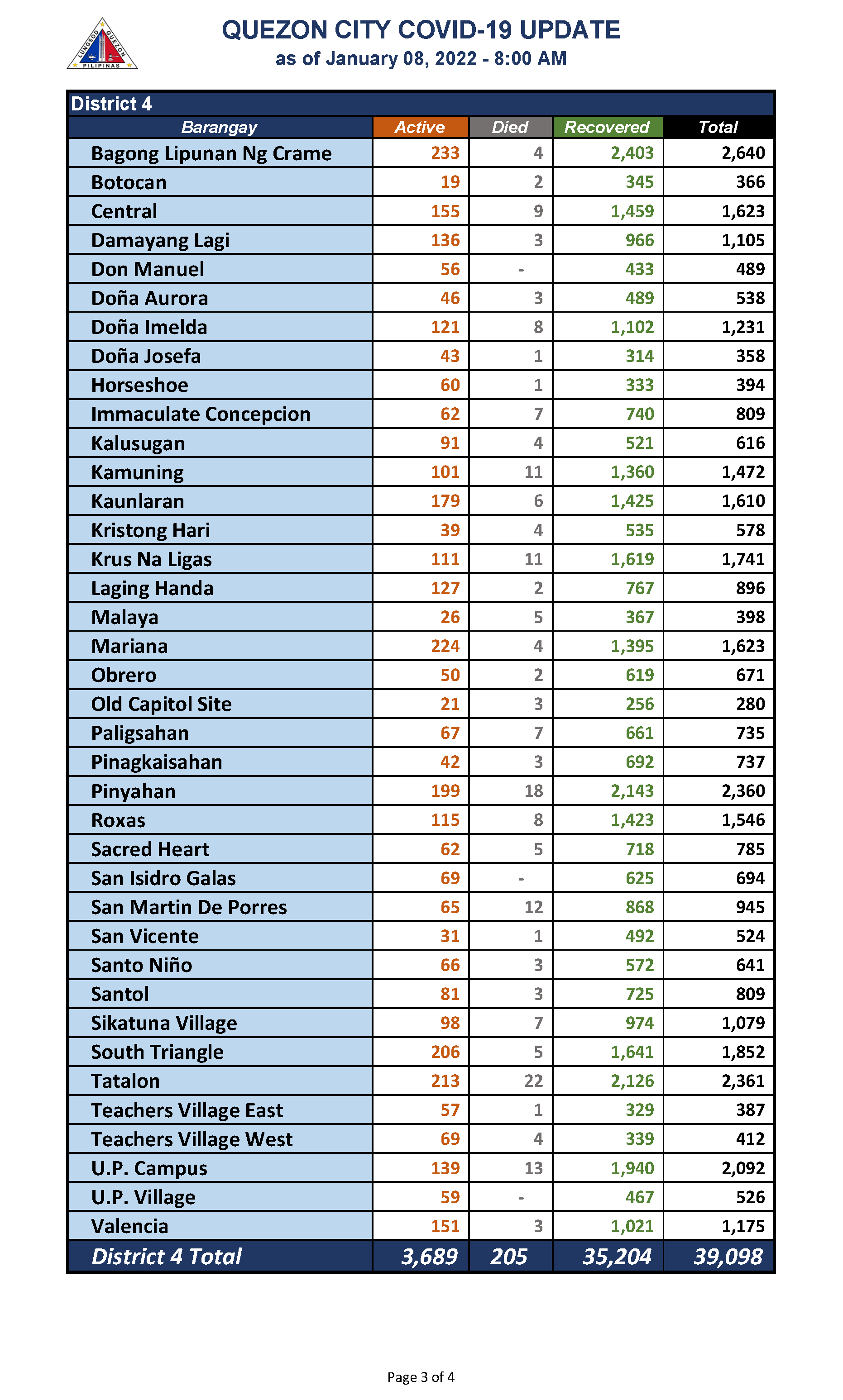 QC COVID-19 UPDATE – AS OF January 09, 2022 – 8AM