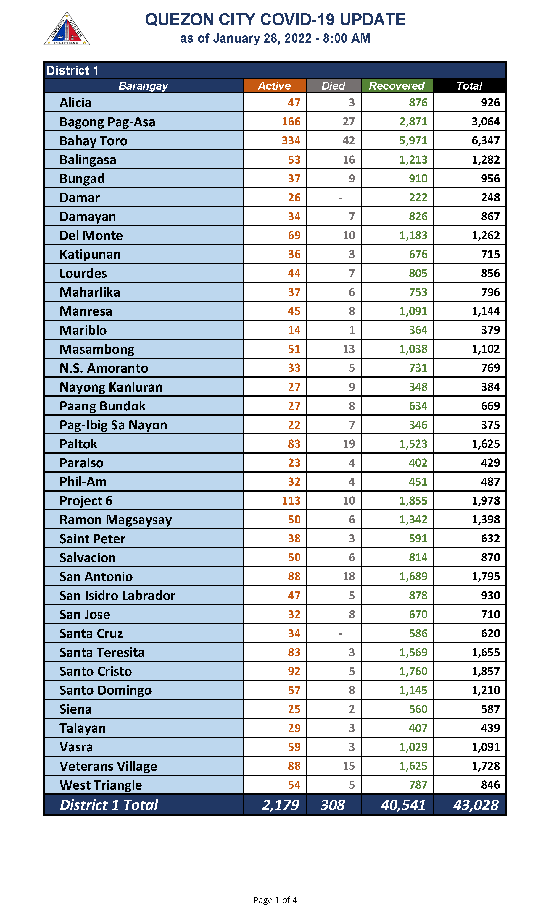 QC COVID-19 UPDATE – AS OF January 28, 2022 – 8AM