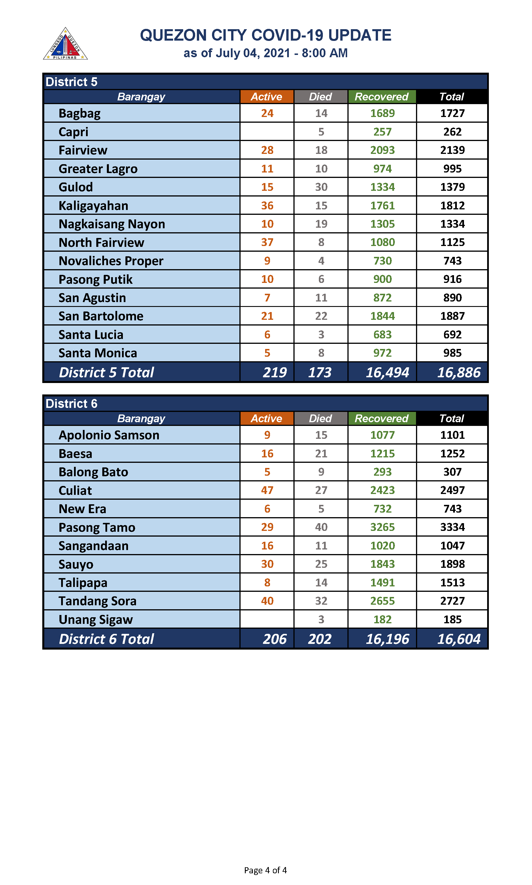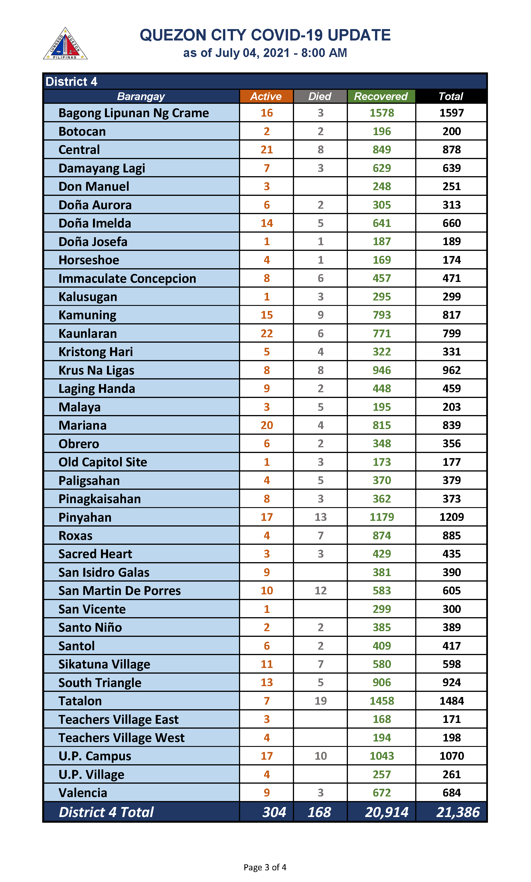 QC COVID-19 UPDATE – AS OF July 04, 2021 – 8AM
