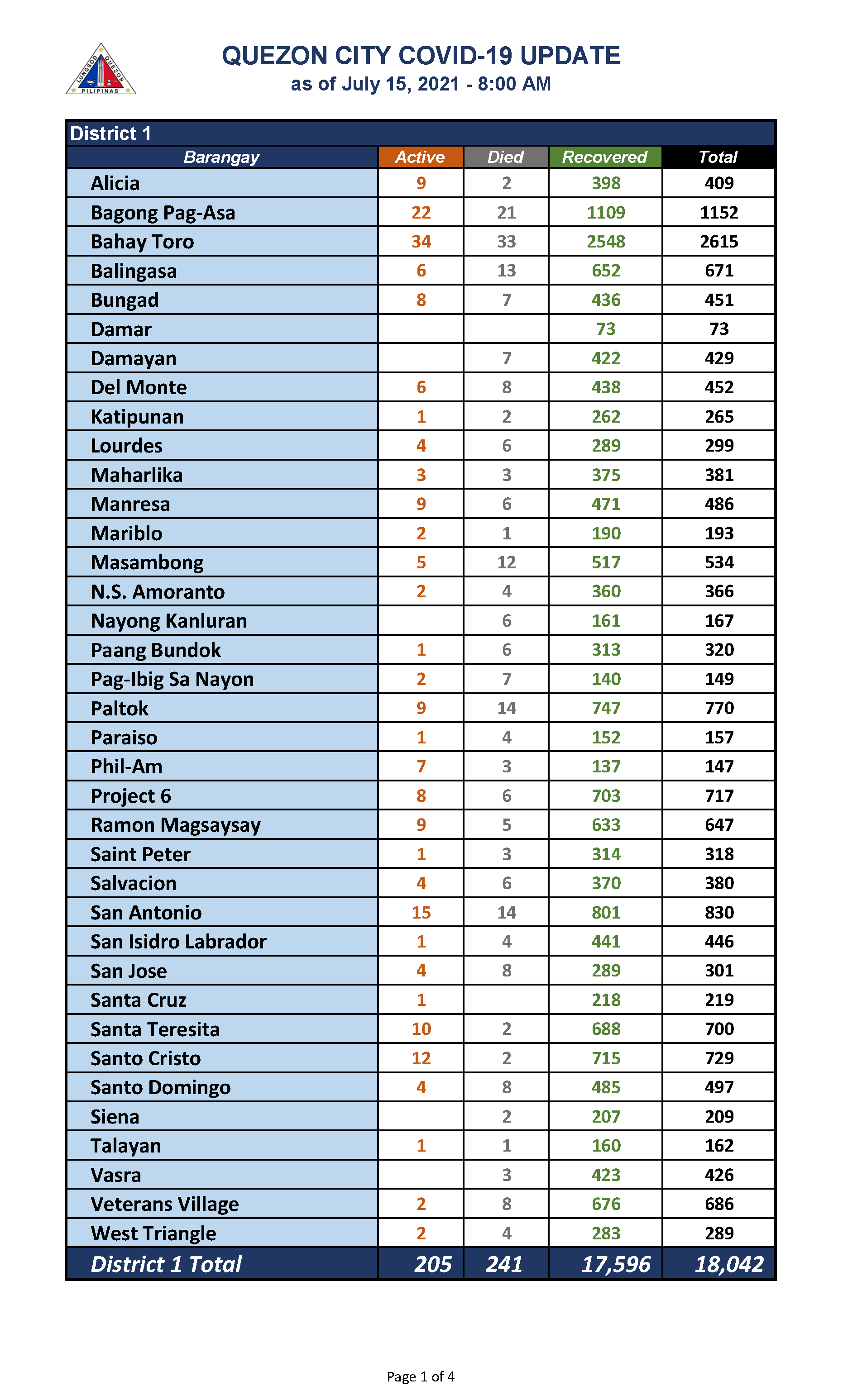 QC COVID-19 UPDATE – AS OF July 15, 2021 – 8AM