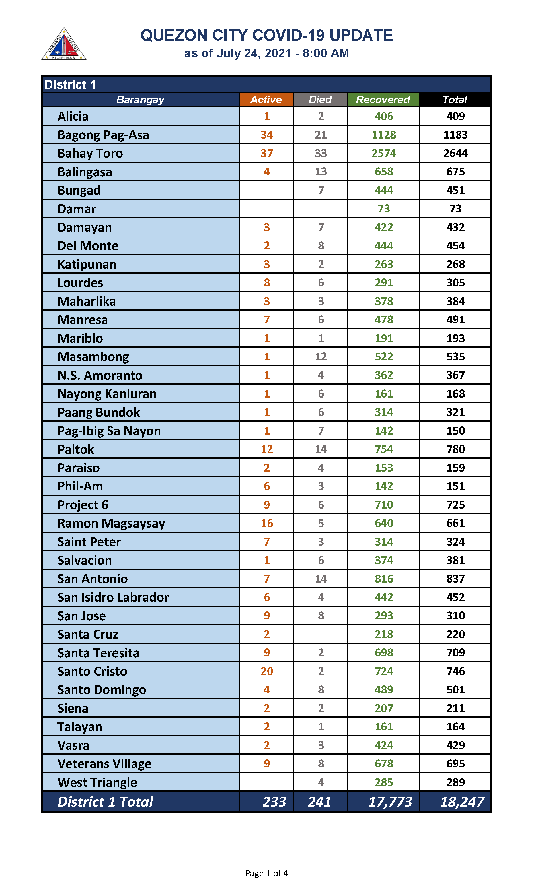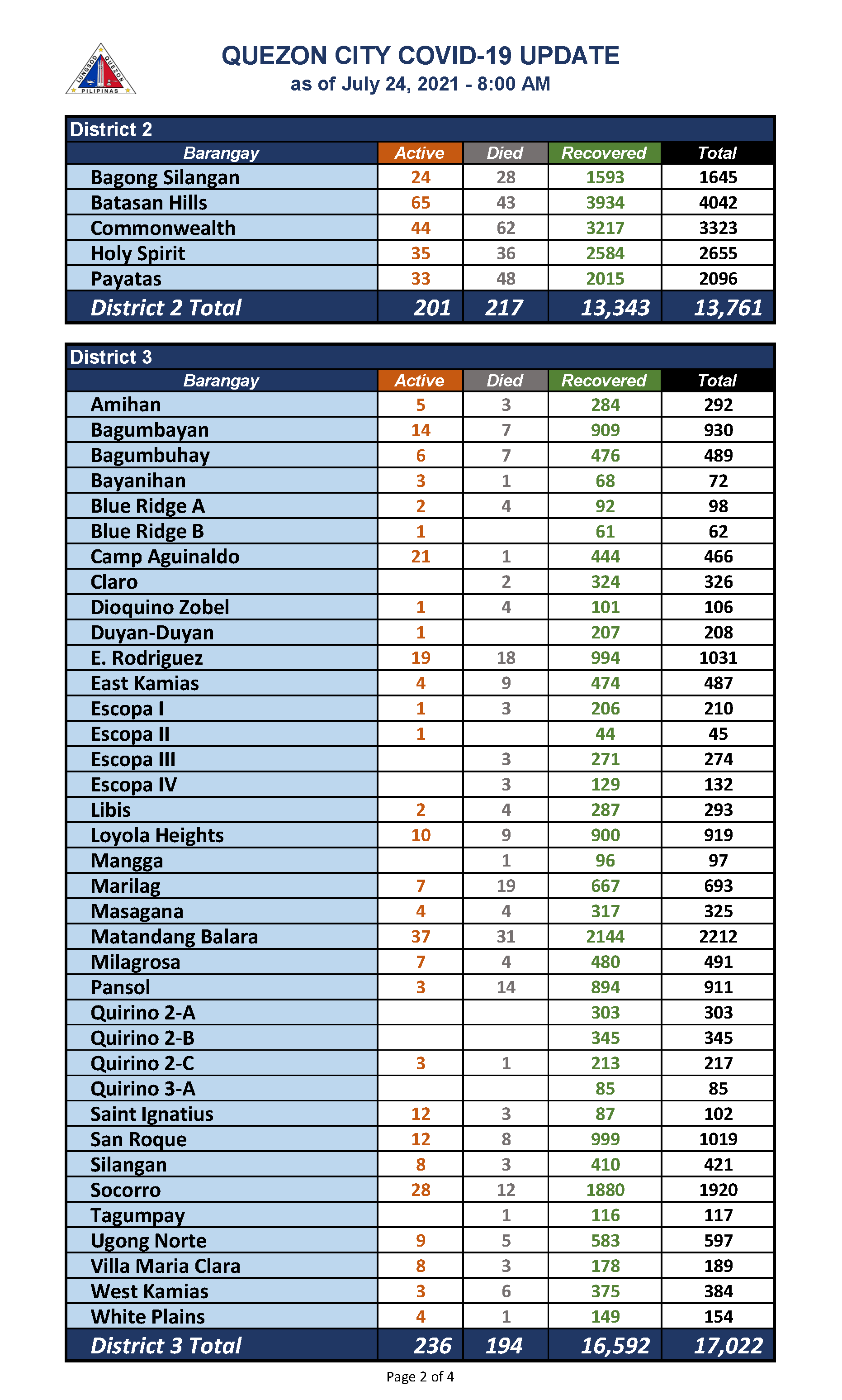 QC COVID-19 UPDATE – AS OF July 24, 2021 – 8AM