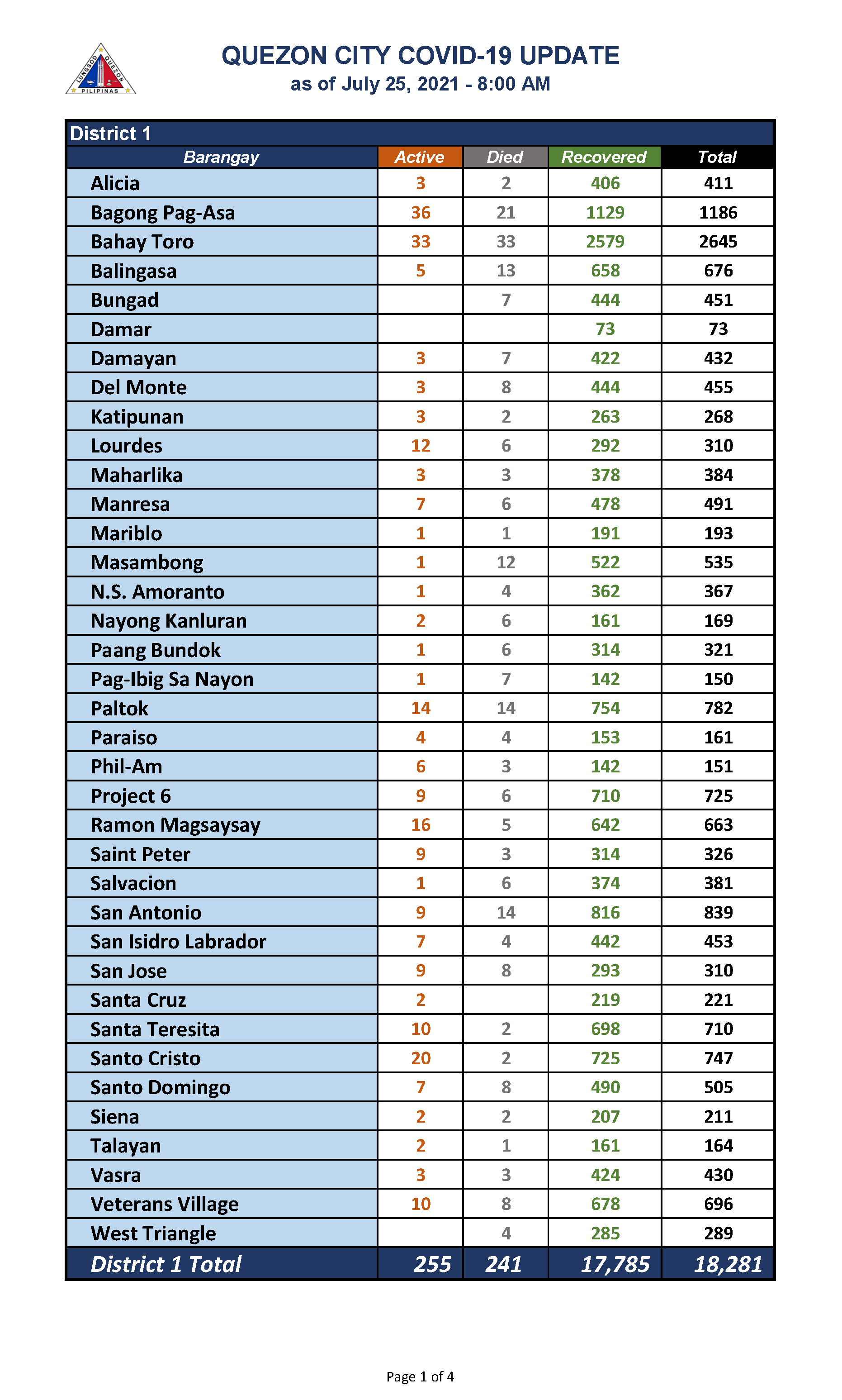 QC COVID-19 UPDATE – AS OF July 25, 2021 – 8AM