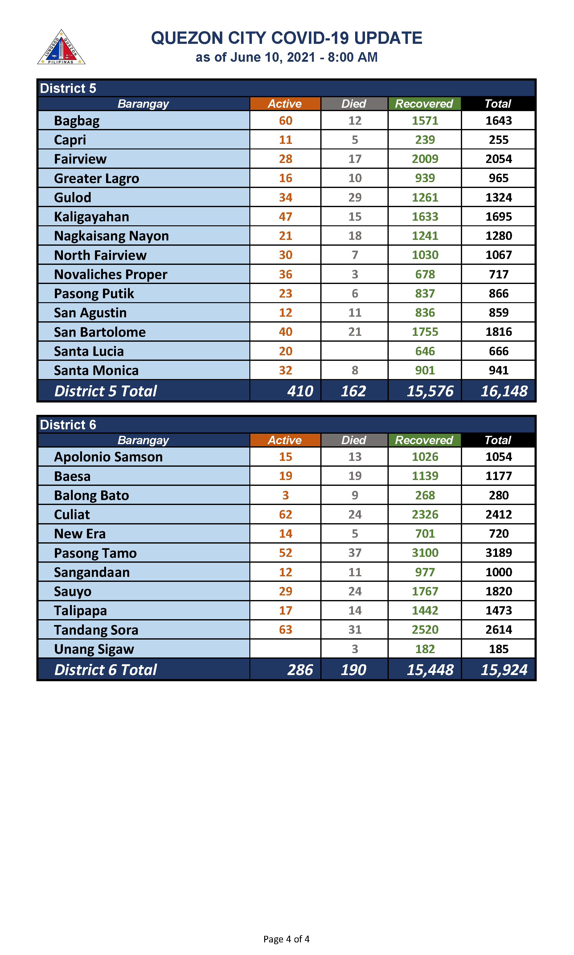 QC COVID-19 UPDATE – AS OF June 10, 2021 – 8AM