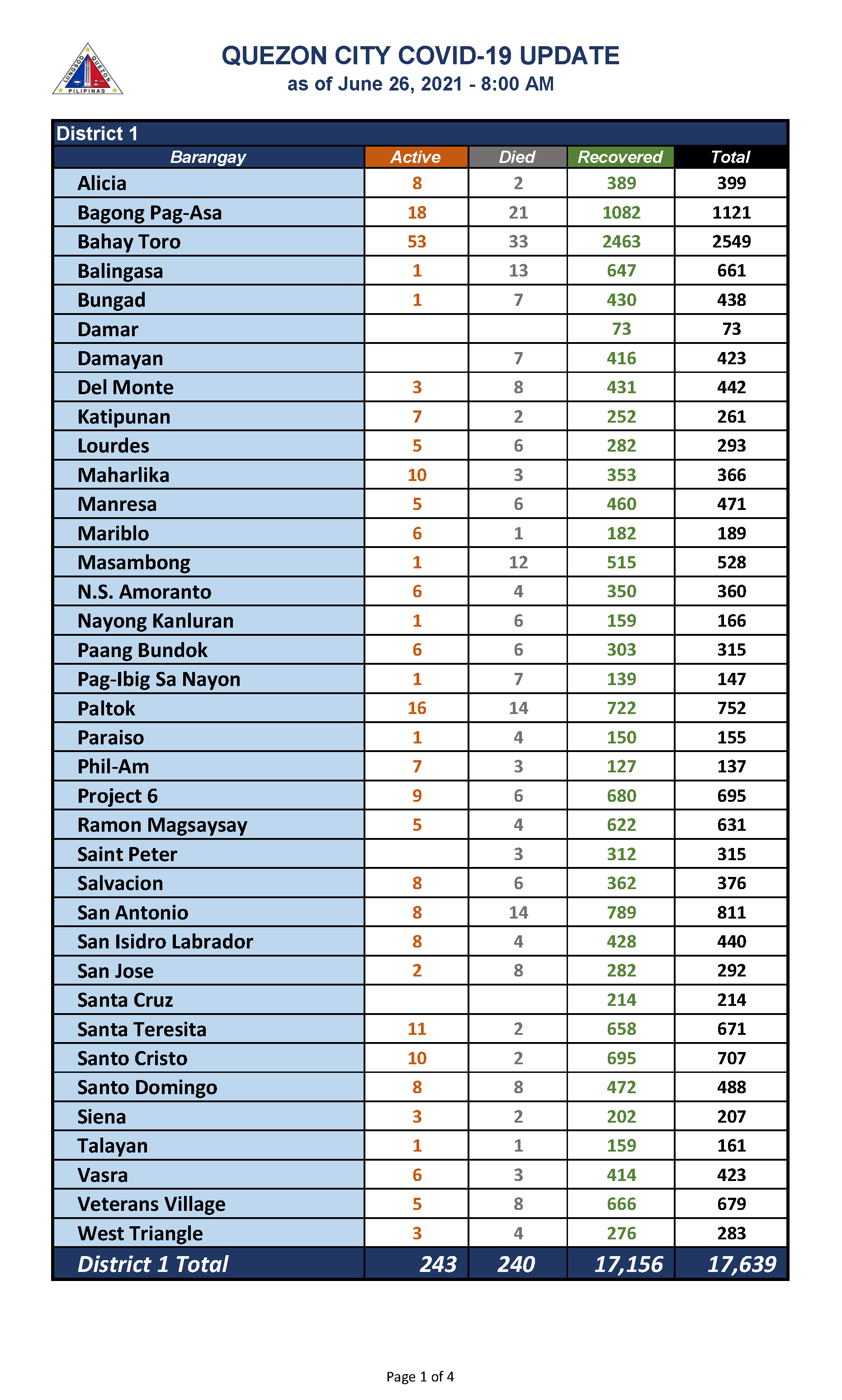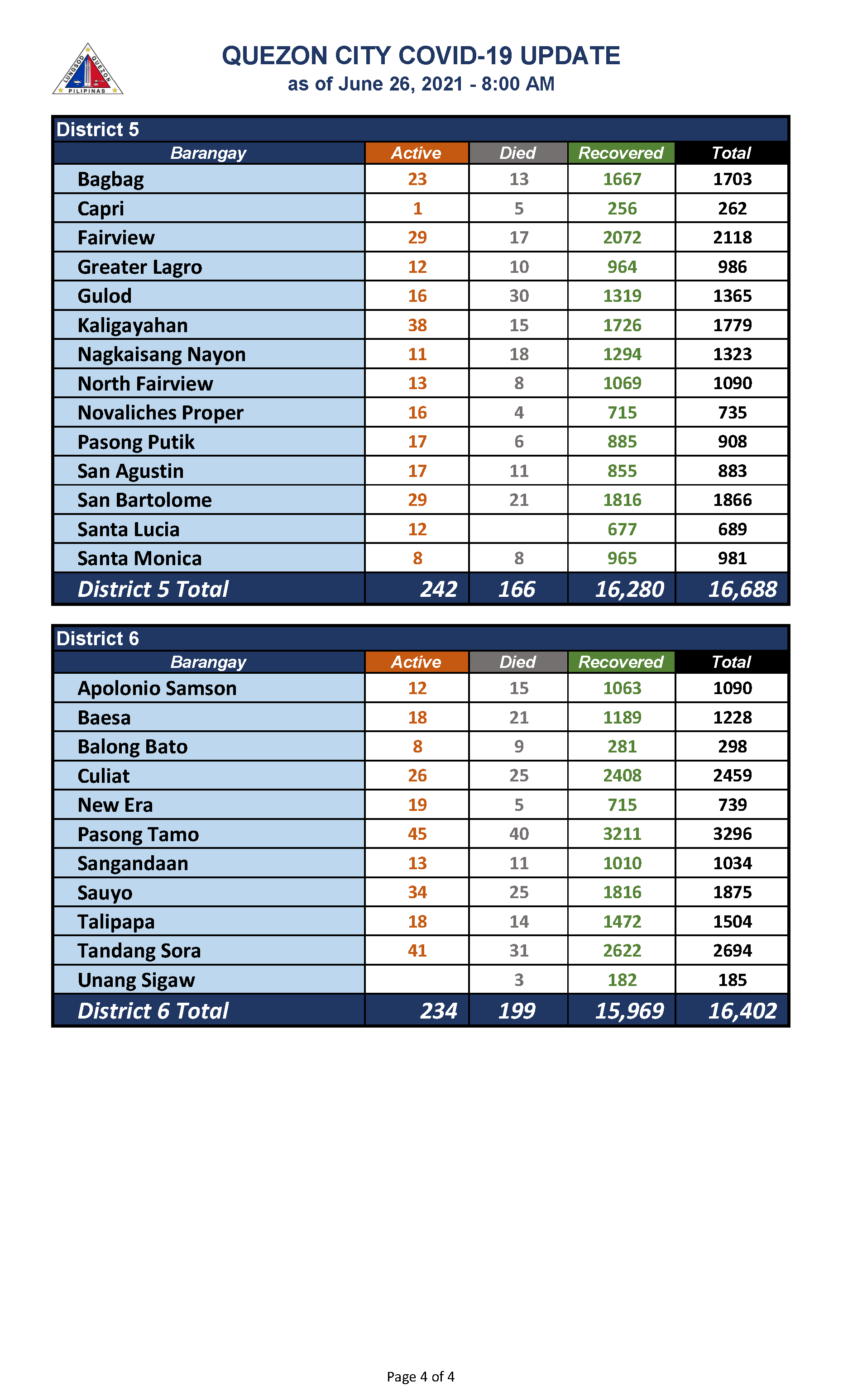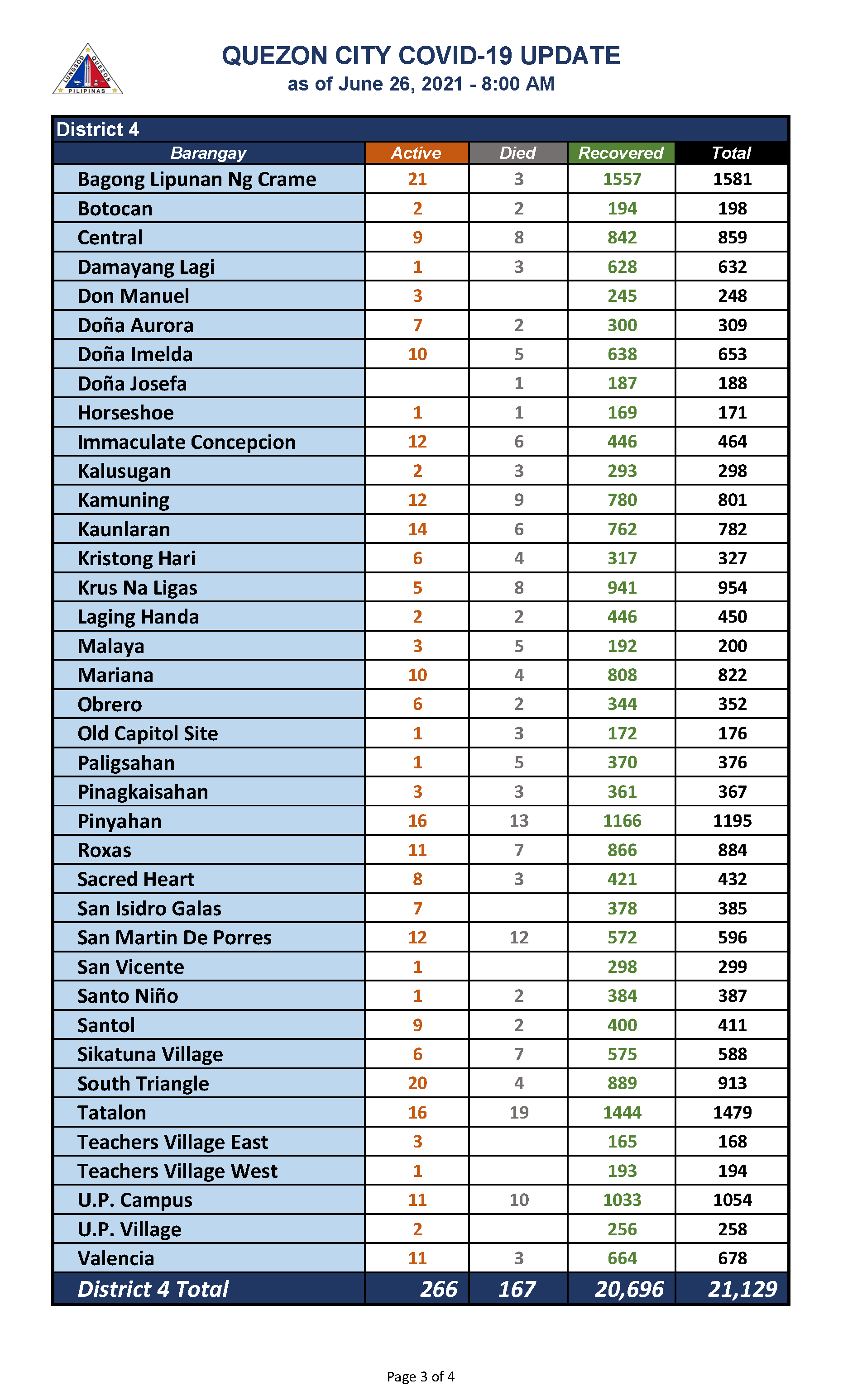QC COVID-19 UPDATE – AS OF June 26, 2021 – 8AM