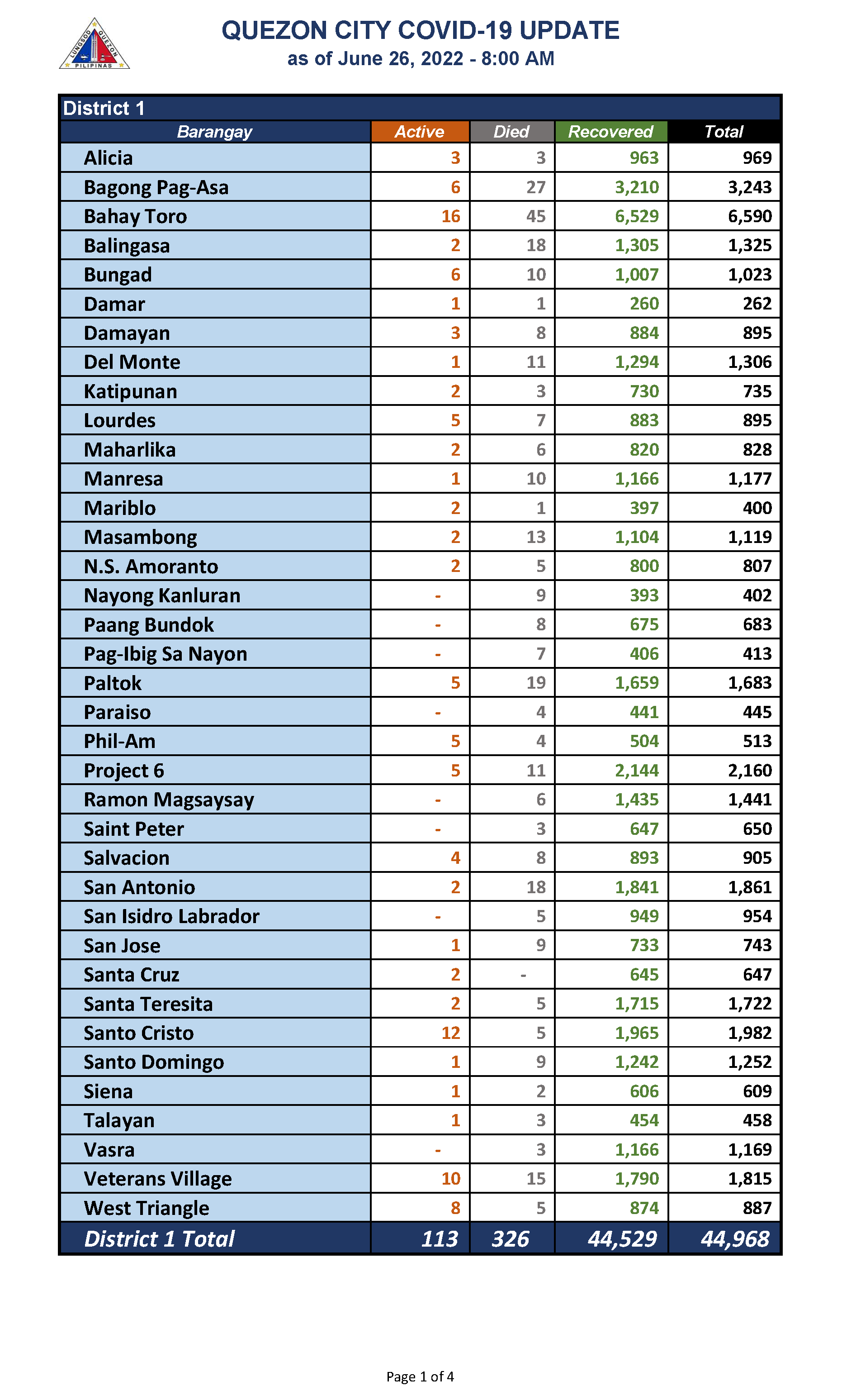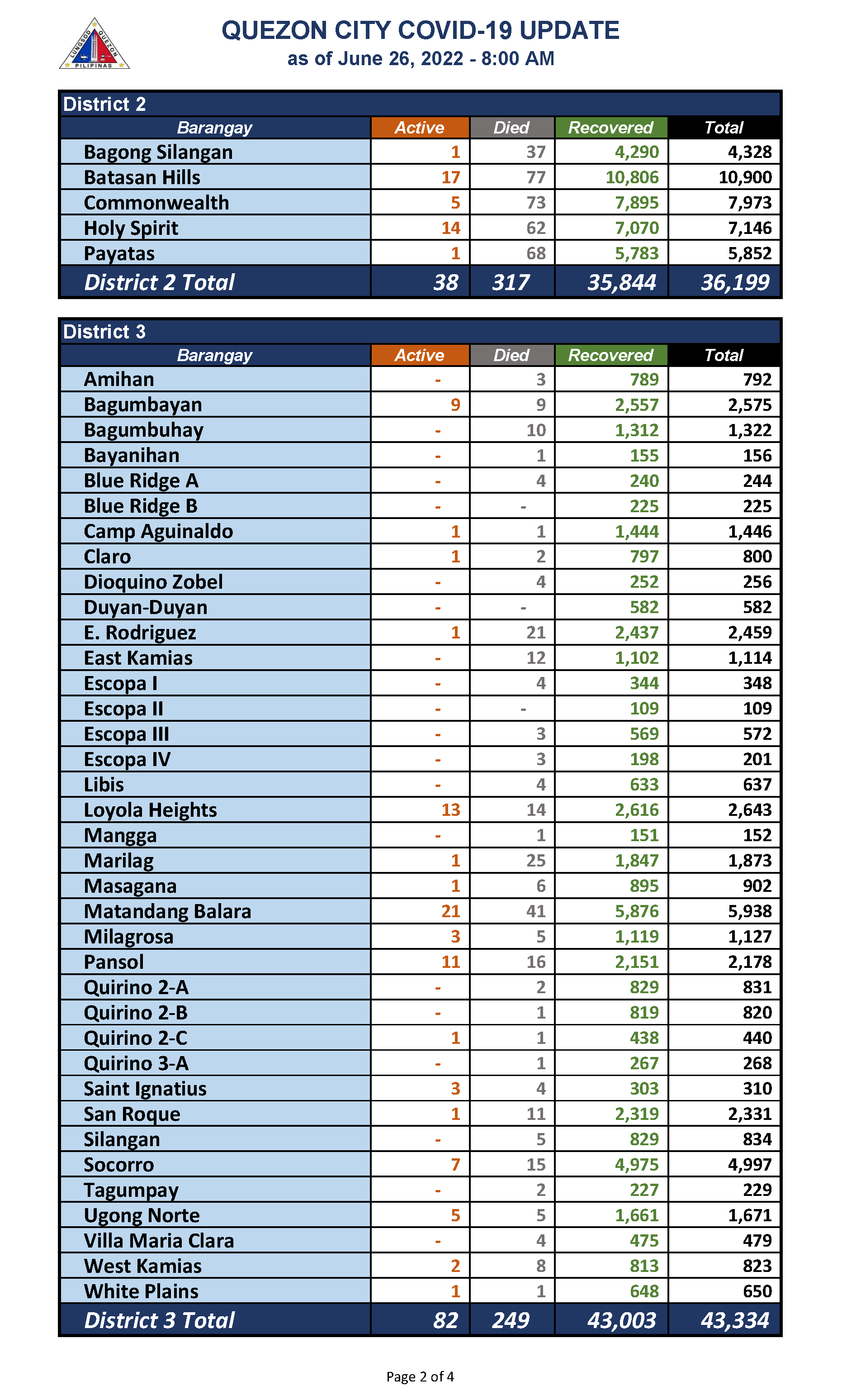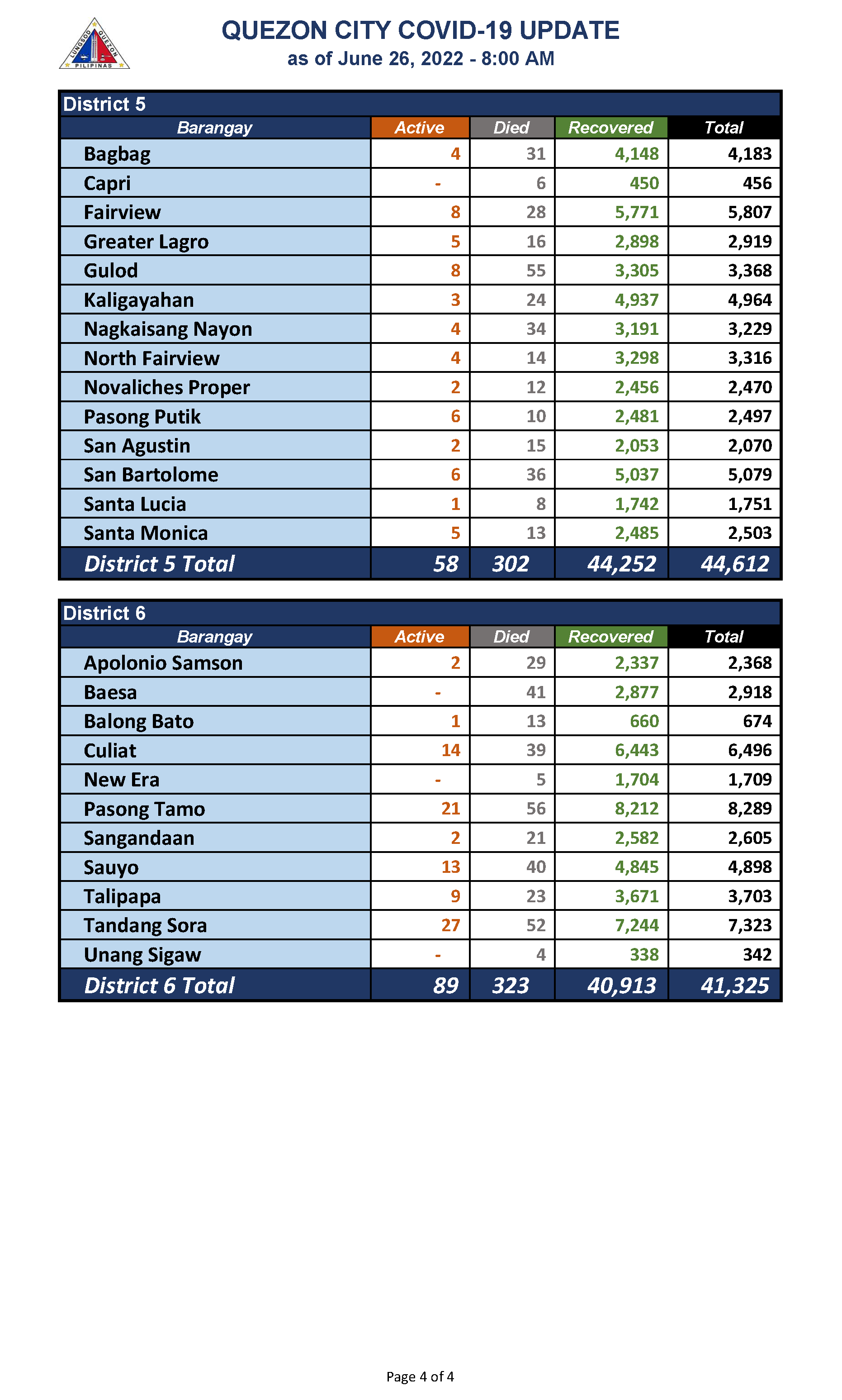 QC COVID-19 UPDATE – AS OF June 26, 2022 – 8AM