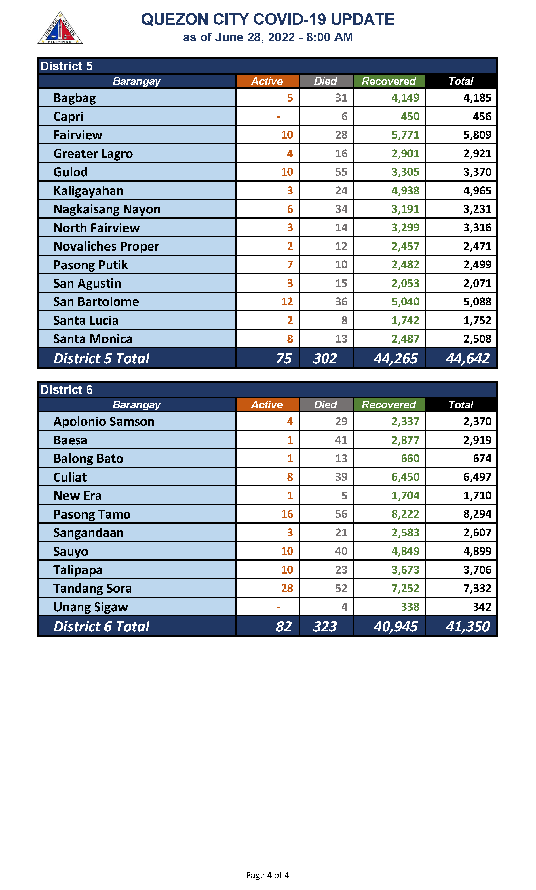 QC COVID-19 UPDATE – AS OF June 28, 2022 – 8AM