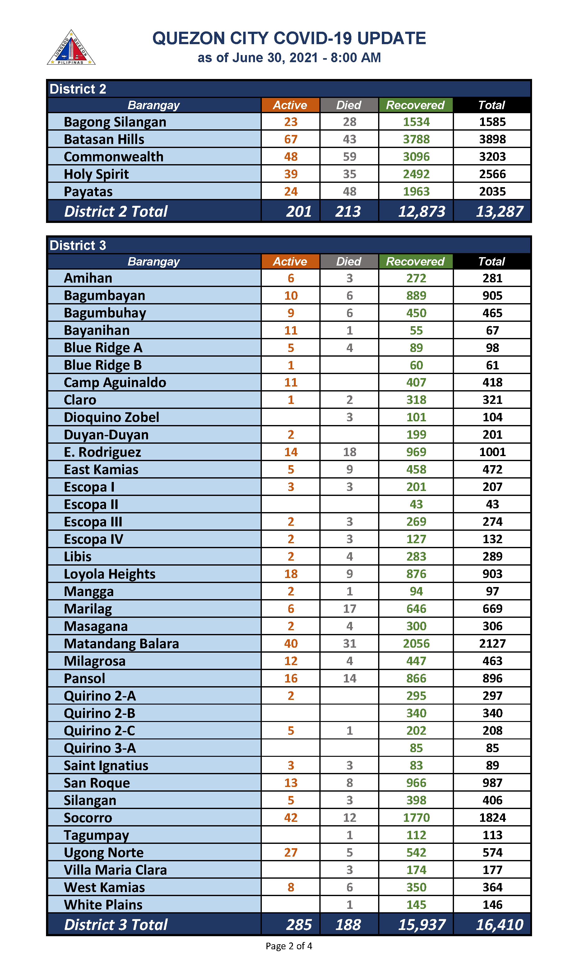 QC COVID-19 UPDATE – AS OF June 30, 2021 – 8AM